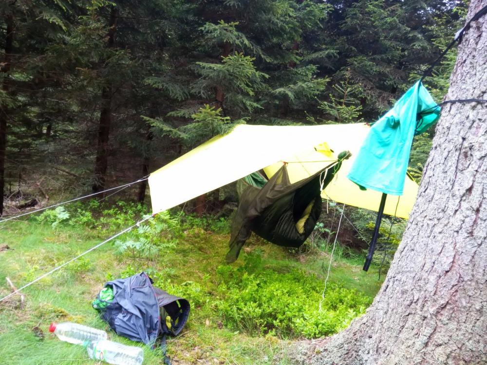 Hallo, ich bin am Sonntag von meiner Harztour zurückgekehrt (125 km in 3,5 Tagen) und kann dabei noch nichts nachteiliges über die fixe Idee berichten. Als Poncho hat das Teil gut funktioniert und auch der Regen in der ersten Nacht war kein Problem. An den Kapuzen kam nichts durch. Ich werde im Garten nochmal testen, wie es bei Gewitter mit viel Wind aussieht. crestfallen