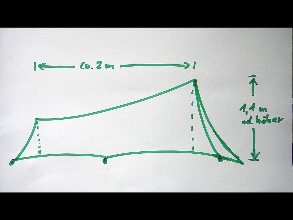 13. Jetziger Planungsstand: Tarp aus 55er Silnylon, Bodenwanne aus 90er Zeltboden, Beides locker vernäht mir 25er Moskitonetz von Ex-Tex. Den Catcut würde ich mir bei dieser einfachen Tarpform durchaus zutrauen (s. Skizze). Zwei Fragen noch: - Sollte man in die Nähte und Säume Verstärkungen einnähen? - an den gestrichelten Linien in der Skizze sollen Moskitonetz und Schutzvorhänge angenäht werden. Ich bin mir unsicher, ob ich beide Teile einfach an das durchgehende Silnylon annähen soll, oder ob ich dort einen Cut im Nylon machen soll. Was würdet ihr machen? Bin weiterhin dankbar für jede Anregung...