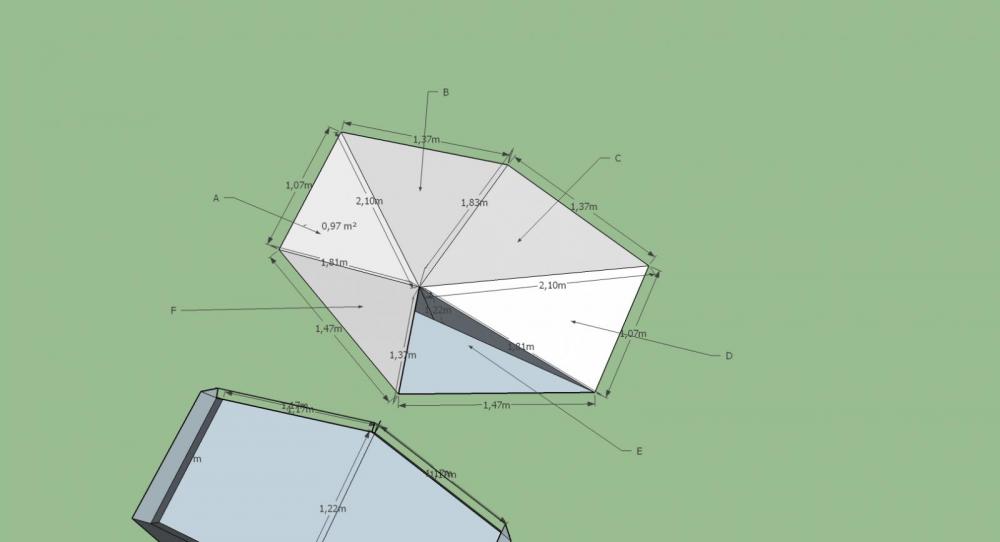 23. Oh ja das sieht klasse aus! Ganz verstanden habe ich das mit dem Parallelogramm nicht. Ich hab nochmal ne Grafik angefügt. Welche Dreiecke würdest du zusammen als Parallelogramm ausschneiden? Ich schätze mit gegenüber meinst du z.B. A und D? Aber entweder bin ich zu blöd, oder da kann was nicht stimmen. Ich bekomme da immer nur einen Drachen raus... Und nähst du erst Einfassband um das Moskitonetz und das dann ans Zelt? Danke für die Hilfe