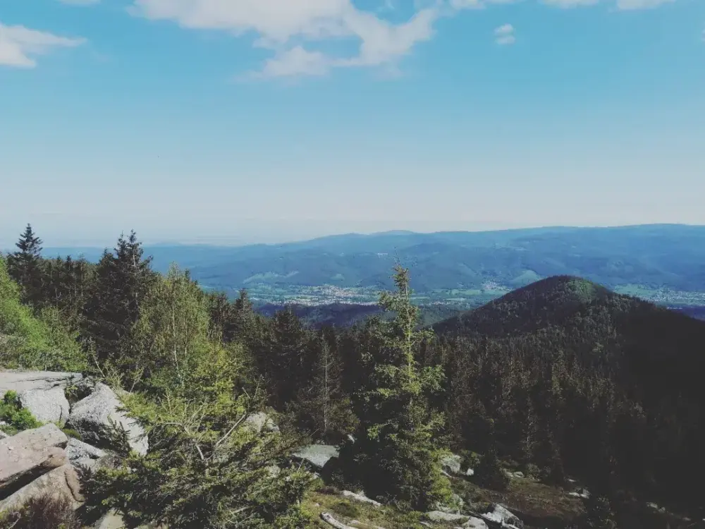 [zwischenstand 20.6.23/ stage 1 completed, 27 tage für die ersten 670km] - Infos vorweg: der Hexatrek ist eine 2022 durch eine Crowdfunding-Aktion ins Leben gerufener Fernwanderweg 3034km durch Frankreich, der die französischen Gebirgszüge mit einander verbindet. SportlichE 138.000 höhenmeter (der PCT hat weniger und ist über 1000km länger - just sayin'). der Weg führt in der Sobo-Variante von Wissembourg durch die Vogesen den Jura an den Genfer See,von dort geht es in die Alpen, streift das Mt Blanc Massiv, verlässt den GR 5 und schwenkt durch die Ecrins und die französischen Voralpen, um nördlich von Avignon die Rhone zu überqueren. Westwärts durch das südliche Zentralmassiv. Die Schluchten von Tarn und Ardeche können bekayakt oder bewandert werden (entsprechende Wasserwege sind in der Hexatrek-App markiert) um bei Carcassone sich den Pyrenäen zu nähern, weitere gute 1000 alpine km. Endpunkt ist Hendaye am Atlantik. Die Hexatrek-Association stellt neben der HP, eine App, sowie einen Discordchannel für Austausch und Informationen zur Verfügung, bedient alle Social Media Kanäle (ausser tiktok, da hat kevin aversionen und er ist zu alt dafür, sagte er bei einem bier in st. hyppolyte - ok, es waren ein paar mehr biere) - gearlist für den trail: klickklick ---- Let's start - die ersten Tage [a.k.a von Wissembourg nach Schirmeck/ La Broque] Die Sonne scheint, wir stehen am Trailhead an der französisch-deutschen Grenze. Ein Briefkasten, drei Holzpflöcke, die ikongraphisch an die PCT-Trailhead erinnern sollen (immerhin wurde die idee des HT 2020 auf dem PCT geboren), Weinberge, die Touribimmelbahn, die zwischen dem von den Nazis erbauten Deutschen Weintor und Wissembourg pendelt, kommt vorbei während wir, die Namen der HT class of 22 und 23 mit dem finger nachfahren. "Bonjour" und Happy Trails. Die ersten Schritte wie immer on trail, voller Erwartungspathos und zugleich zwei, drei Schritte. wir lachen, strahlen und schauen und bedeutungsschwer und verschworen an. 3034km durch Frankreich haben so eben begonnen. Wir laufen zurück nach Wissembourg, pittoresk ist es - wir kennen es bereits aus vielen Weekendern, so ist uns der HT überhaupt auch erst aufgefallen: 2021, eine unbekannte Trailmarkierung, Schnellrecherche. Aha Hexatrek. Okay, kool. direkt auf die Bucketlist. Kein Jahr später stehen wir also auf diesem Trail... Die Nordvogesen, gehen nach Norden sanft in den Pfälzer Wald über, fallen im Osten seicht in den Oberrheingraben, der im Dunst des Tages vor uns liegt. Der erste Anstieg ist gemacht. Wind rauscht in den Weizenfeldern und Baumkronen. Die ersten Burgen, trutzig auf die Sandsteinformationen der Gipfel geklotzt. Rotbuchenwald ASMR rascheln der Blätter mit jedem Schritt, Kiefernhaine, Besenheide und Brombeere kriechen über den sandigen Boden - die Borke knarzt im Wind, die Nadeln rauschen dürr. Es duftet harzig ubd warm. Wir lassen es langsamer angehen - 27 km im Wald bei Froensburg ist Schluss für den ersten Tag. Noch mehr Burgen - Wasignstein, Petit Arnsberg, Wittschloessl, Windstein - ich als Kind des Oberen Mittelrheintals, bin geneigt blass, ob der Burgendichte zu werden. Tagesziel ist Niederbronn, da gibt es einen Supermarkt, wir haben in Wissembourg nur für zwei Tage resupped. Nach vielen Burgen, viel Wald, viel sanften auf und ab, sowie erodierten Sandsteinformationen erreichen wir Niederbronn. In der dortigen Bar trinken wir auf die ersten 50km Picon Biere, und weils so lecker ist noch eins... wir wollen von dem Tag nicht mehr viel, ausser aus Niederbronn raus und einen Pennplatz suchen. Den finden wir ein paar hundert Höhenmeter weiter, auf dem Biwakplatz Wasenbourg. Die zwei kleine Bier sind längst ausgeschwitzt, den angetüterten Hochmut haben wir der Realität der Höhenmeter geopfert. Wir genieszen die Aussicht, die auch schon Goethe genossen hat, wundern uns schon nicht mehr wo der alles war, suchen vergeblich den Blick nach Straßbourg über den er dichtete - vielleicht hätten wir auf den Bergfried steigen müssen. Burgen, Sandsteinfelsformationen, Wald in unterschiedlichen Reihenfolgen und Gewichtungen. Ein Green Tunnel mal Licht, mal dunkel dicht. mal aus Buchen mal aus Kiefern, mal aus Tannen. Da und dort zerharversert, hier und da hat der Wind entschieden, wie der Baumbestand auszusehen hat, ab und an eine Aussicht, wir machen Höhenmeter und gleiten langsam aber sicher in die Haute Vosges - recht unvermittelt stehen wir an Tag 5 über 800 Metern und kratzen an der 900er Marke. Col du Schneeberg. Tags darauf laufen wir bereits auf die beiden höchsten Punkte der Nordvogesen, den Rocher du Mutzig, random sind dicke Felsklötze auf dem Gifpelplateau verteilt, das der Landschaftsgärtner Lothar 1999 nach seinen Vorstellungen umgestaltet hat, Heidelbeere trotzt sich aus den Ritzen, die Sonne steht schon Nachmittagstief, der Blick in weite Breuschtal, gen Süden der Bergkette folgend, ist der Donon - auch 1009m hoch - mit seinem markantem Tempel sichtbar. 10 Trailkm noch. Frustrierend, sind wir doh an dem Tag kaum - 12km dato - voran gekommen. Die 10km ziehen sich - metale Schwerstarbeit - um 20h ish stehe wir auf dem Gipfel. Myriaden von Ausflugstouris haben das Sandsteinplateau zu einer platten Ebene geschliffen, haben ihre Namen, ihre Liebesschwüre, ihren Lieblingsverein oder ihre Klassenfahrt in den weichen Stein geritzt - heute abend ist niemand da (oky, ein Trairunner und eine Wanderin), der Wind trocknet den Schweiß des Aufstiegs, wir grinsen Richtung Norden - das haben wir bereits geschafft, wir schauen ehrfürchtig de Hügelketten gen Süden, das steht uns noch bevor. Unterhalb des Donon suchen wir uns einen Schlafplatz - es wird kalt die Nacht, der Wind pfeift, trotz tief abgespanntem Zelt und windabgewandter Seite - nur doof wenn der Wind immer wieder dreht. Eo frösteln wir im Windchill und wachen etwas gerädert auf. Aber an Tag 7 steht ein Nearo-Day Plus ein Hotelzimmer... 10ish km to go. die Aussicht auf Kaffee - als