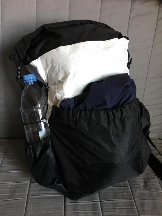 So, nach einigen längeren Schichten in der letzten Woche ist der zweite Rucksack nun fertig geworden: Als Materialien wurde das 120g Diamond Ripstop Nylon (Körper), das 90g Zeltboden Nylon (Rücken, Schulter- und Hüftgurte) sowie das 90g Silikonnylon (Taschen) verwendet. Außerdem noch das 3mm Spacer Mesh für die Schulter- und Hüftgurte. Innen befindet sich noch eine Mesh-Tasche für das Pad. Den Hüftgurt habe ich erst nachträglich angebracht, was einiges an zusätzlichem Arbeitsaufwand bedeutete, den ich mir gut hätte sparen können, wenn ich im Vorfeld etwas mehr Zeit in die Planung gesteckt hätte. Wollte aber unbedingt loslegen. Hab mich da am Üla Ohm Design bedient. Befestigt wird der Hüftgurt über Velcro. Insgesamt bin ich mehr als zufrieden mit dem Endergebnis. Die Optik gefällt, es passt eine Menge rein, lässt sich aber auch runterkomprimieren. Das Volumen liegt bei knapp über 30l + Front- und Aussentaschen. Maße sind 55x27x20 cm, wobei die Höhe im Fall der Fälle auf knapp 60cm erweitert werden kann. Rückenlänge sind 53cm. Lessons learned: Die seitlich angebrachten Verschlüsse für die Schnallen am Rollverschluss hätten etwas weiter unten angebracht werden müssen. Bei geringer Befüllung sitzt der Rollverschluss etwas labbrig und der Inhalt wird nur mäßig komprimiert. Bei einer ersten Testrunde durch den Park zeigte sich, dass die Verbindung der Schultergurte am Rückenteil über Gurtband hier komplett versagt. Der Rucksack saß total schwammig und wackelte hin und her. Daher werde ich die Schultergurte direkt am Rücken festnähen. Davon erhoffe ich mir dann auch mehr Wirkung des Hüftgurtes. Am Wochenende steht dann eine längere Tour in der Eifel an, mal sehen wie er sich dann schlägt. Es bleibt erwartungsgemäß noch einiges an Verbesserungsbedarf für die kommenden Projekte. Ich freu mich drauf. Zu guter Letzt: Incl. Pad und Hüftgurt bringt der Rucksack 368g auf die Waage. -