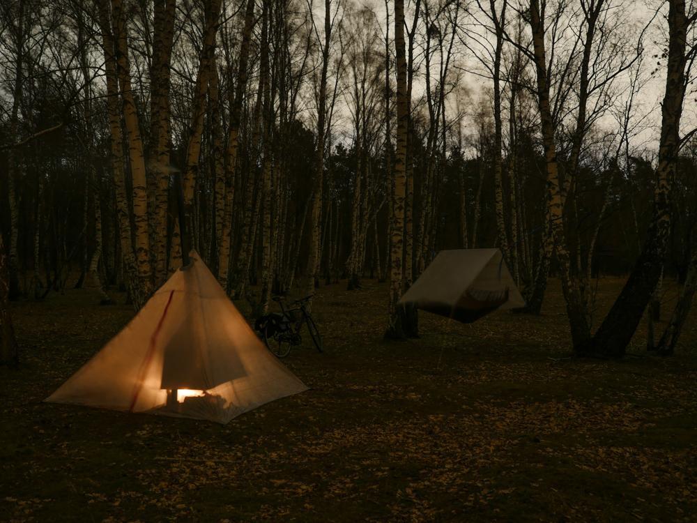 @questorIch bin völlig trocken geblieben und glaube mittlerweile, dass mit diesem Tarp die allermeisten Regennächte abgewettert werden können. Sehr starker Wind dürfte ein Problem sein, aber ansonsten reicht es. Im Online-Shop ist das DCF übrigens schon ausverkauft, aber in Kreuzberg haben sie noch was. @OmorotschkaIch bin mir ziemlich sicher, dass die Umgebungstemperatur für so kleine Öfen eine Rolle spielt. Reingeregnet hat es nicht, da nach Mitternacht kein Niederschlag mehr kam. Und das Eichenholz am Havelhöhenweg hatte mit Sicherheit einen höheren Heizwert als die Birken an der Dahlemer Wiese.