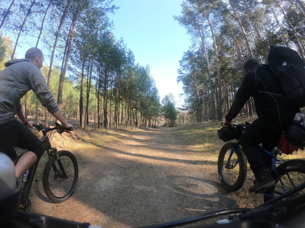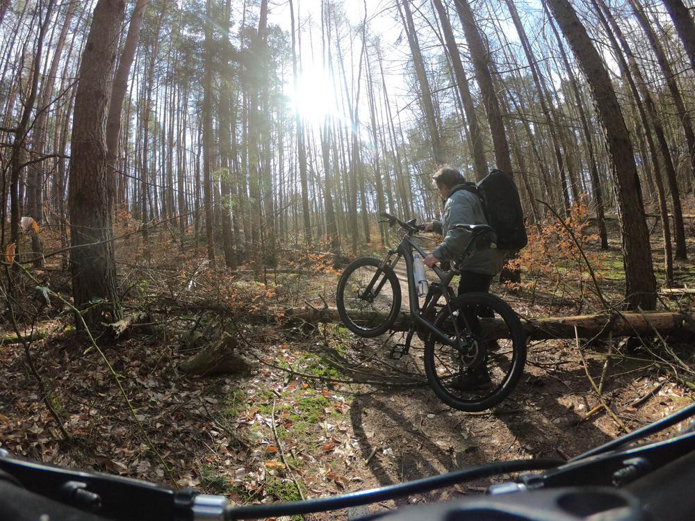 Mit @noodles und @Omorotschka bin ich am vergangenen Wochenende einmal durchs Schlaubetal und wieder zurück geradelt: ein Frühlingsauftakt, der nicht nur vom Wetter her rundum gelungen war! Noodles und Omorotschka, die hier die Räder getauscht haben, fuhren, der UL-Lehre und dem Untergrund gemäß, auf einem Full-Suspension-Carbon-MTB und einem Surly Pugsley Fatbike, während ich mangels Alternative mit meinem 28er Stadtrad mit Schutzblechen, Kettenschutz und Gepäcktaschen unterwegs war. Die Strecke führt durch landschaftlich sehr abwechslungsreiches Gelände, und ist zudem gespickt mit Wirtshäusern. Immer wieder fährt man lange Strecken direkt am Ufer. Die Schlaube selbst ist zwar nur ein schmales Flüsschen, aber sie erweiterte sich immer wieder zu einer stattlichen Seenlandschaft. Übernachtet haben wir auf einer Anhöhe in unseren Hängematten. Omorotschka mit einem sehr minimalistischen Setup aus 11-Fuß GE-Hängematte mit knappem Underquilt und Poncho-Tarp. Ich habe in der Cross Hammock Querhängematte genächtigt mit einem DCF-Tarp, dem ich an der Ridgeline noch eine Verbreiterung gegönnt habe. Noodles benutzte ebenfalls eine Cross Hammock, allerdings mit Moskitonetz und drüber ein Wintertarp. Wegfindungsschwierigkeiten gab es eigentlich keine, aber wir haben uns - neben den 50 km Strecke - doch auch so manche Rast gegönnt. Nur einmal schien es so, als ob der Weg sehr durchs Nasse führen würde. Die Urheber dieser Flussverbreiterung waren schnell ausfindig gemacht. An einigen Stellen mussten Hindernisse umtragen werden. Aber insgesamt war es ein sehr genussreiches Vorfrühlingsradeln!