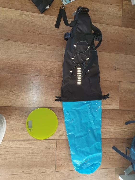 Moinmoin liebe Community, ich versuche mich mal an meinen ersten Kurzreview zu den Taschen von Lidl. https://www.lidl.de/de/crivit-fahrradtasche-fuer-den-lenker-rahmen-oder-sattel-mit-klettverschluessen/p331779 Die Taschen sind stabil und sauber verarbeitet. Der Packsack des Harness ist aus UL Sicht definitiv zu vernachlässigen, bei 165g für 9l. Das Harness selbst wiegt 133g, ist 50cm lang und 24cm breit. Packsäcke bis max 17cm Durchmesser passen rein. Leider sind die Gurte nicht ohne weiteres auszutauschen, da sie festgenäht sind. Das Gewicht der Satteltasche konnte ich, durch herausschneiden des blauen Innenlebens aus Plastik, direkt von 403 auf 276g drücken. Klar ist sie jetzt nicht mehr wasserdicht, was aber mit einem leichten Liner gut zu lösen ist.