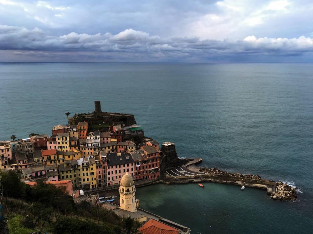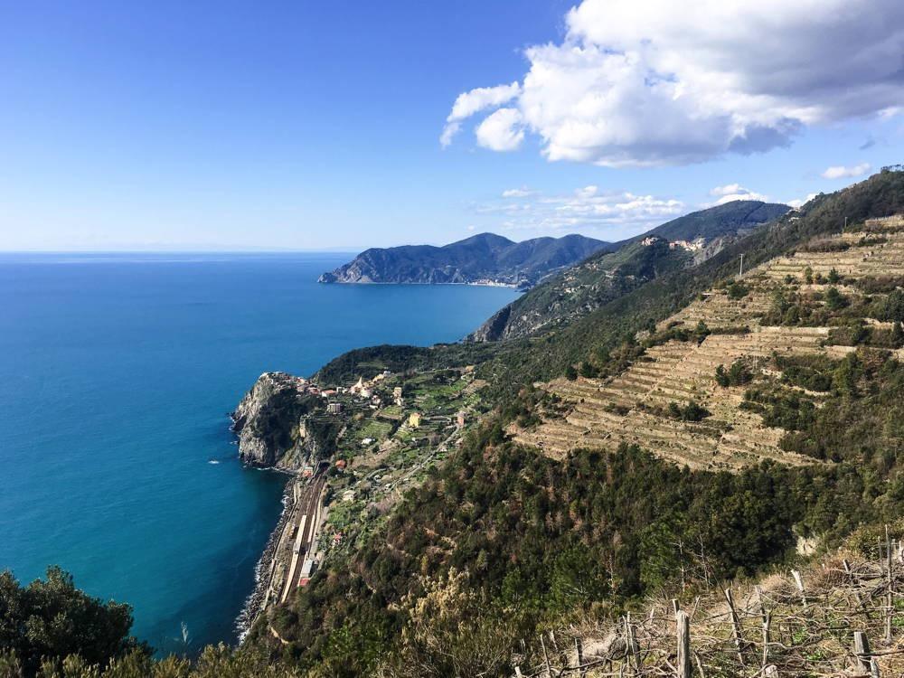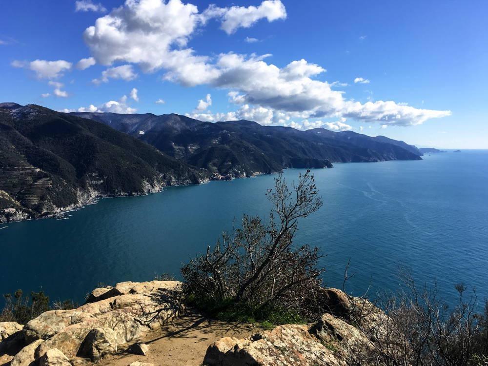 (Die Tour ist schon ein Weilchen her, aber ich hab kürzlich mal wieder die Fotos – alle selbstgeknipst – durchgeblättert und hatte Lust kurz was dazu zu schreiben.) Mitte Februar 2018, nasskaltes und trübes Wetter in Deutschland. Seit Wochen keine Sonne mehr gesehen. Dringend nötig: eine kurze Auszeit in den Frühling. Wärmere Gefilde, von Süddeutschland aus gut mit Fernbus/Bahn erreichbar? Die Wahl fällt auf Ligurien, genauer: Cinque Terre. Wettervorhersage: 10 bis 13 °C, wechselhaft, meist trocken. Eine eher spontane Entscheidung: am Mittwoch beschlossen, am Samstag Abend los. Flixbus über Nacht bis Genua, Regionalbahn nach La Spezia. Vor zur Landspitze bei Porto Venere, dann durch Cinque Terre, mal schauen wie weit wir kommen. Es geht mal an der Küste entlang, dann wieder steil die Weinberge und Olivenhaine hinauf und durch die Wälder, wieder runter zum nächsten bunten Städtchen … immer auf wunderschönen Wegen – und um diese Jahreszeit total einsam! Dass auch die meisten Hotels und viele Restaurants noch geschlossen haben, ist dank Zelt und Kocher kein Problem. Übernachtung: 1× Berghütte (Rifugio Muzzerone), 2× Zelt, 1× Hostel in Framura. Im steilen Gelände ist es gar nicht so leicht ein geeignetes Plätzchen fürs Zelt zu finden! Wie gut dass die einsamen Wallfahrtskirchen außerhalb und oberhalb der Städtchen meist einen ebenen Vorplatz mit Wiese (und herrlicher Aussicht!) haben … Einkaufsmöglichkeiten für frische Lebensmittel finden sich dagegen immer wieder. Trinkwasser ist vollkommen unproblematisch, in jedem Ort gibt es Brunnen. Unten am Meer mildes frühlingshaftes Wetter, Zitronenbäume mit reifen Früchten, duftende Kräuter, Sonne! Oben auf dem Bergkamm eher kühl und schon auch mal feucht, was aber fürs Wandern schon in Ordnung ist. Nachts auch noch kalt, an einem Morgen sogar ein Hauch von Schnee bis knapp oberhalb des Lagerplatzes – es ist eben doch erst Mitte Februar und wir sind auf fast 400m. Von Moneglia wieder mit der Bahn zurück nach Genua. Altstadtbummel, bisschen durch die Markthalle schlendern, lecker Abendessen, Fernbus über Nacht zurück nach Hause. Ein rundum gelungener Kurztrip.