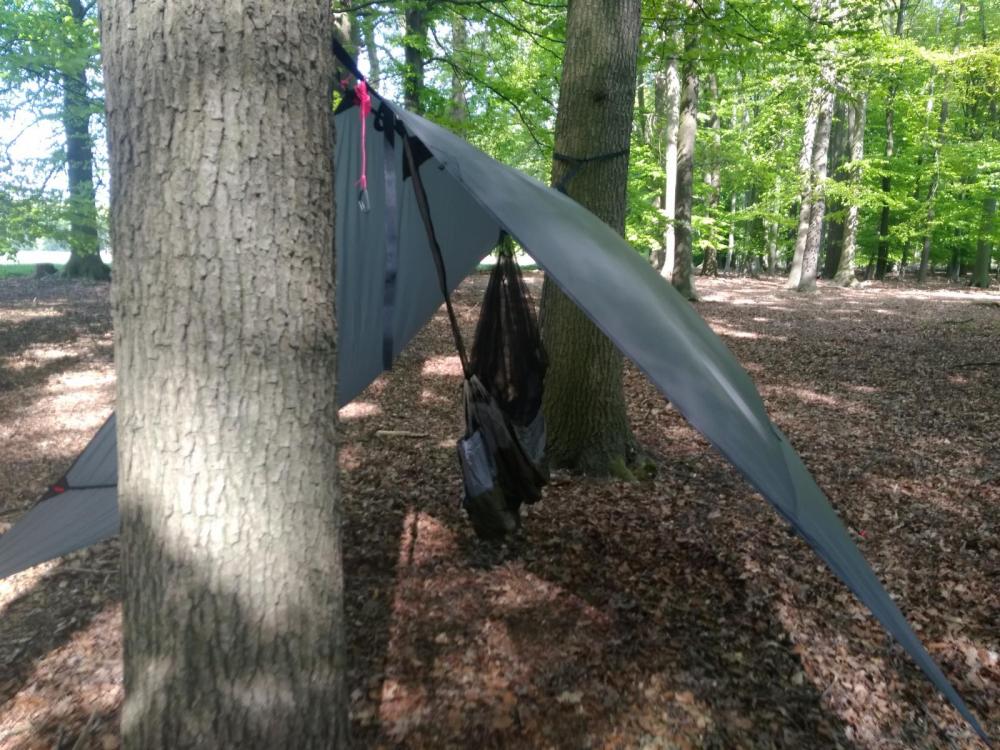 Mega cool @ChristianS. das Gewicht der HM liegt ja im Bereich eines normalen Bug-Bivis, nur die Baumgurte kommen dann an Mehrgewicht. Ist ja der Hammer! Besonders, wenn man dies mit den Gewichten von Gathered-End HM vergleicht. Da liegt das Mehrgewicht (relativ betrachtet im Vergleich zum reinen UL-Bodensetup) bei 600 - 1000 Gramm. Danke auch nochmal fürs Ausmessen der Abspannschnüre, habe meine jetzt auch so 2 - 2,50 m und das geht wesentlich besser als die 1,50 langen Schnürsenkel :D. Und ebenfalls danke für die Illustration der Aufhängung. Das habe ich auch so ausprobiert und es funktioniert bestens. Zu dem Moskitonetz habe ich mir auch noch einige Gedanken gemacht. Du hast ja quasi eine Pyramide nach dem Vorbild des Käfigs neben der HM genäht oder ? Wie hast du die Höhe ausgemessen, einfach von Isomatte bis zur Ridgeline? Bei meiner Hammocktent ist es etwas anders, das Netz ist ein Einzelteil mit 80 cm Höhe. Also whrs. eine 165 cm Breite Stoffbahn an die HM genäht und das Fußende mit einem Reisser versehen. Da müsste ich mal testen ob es sich genauso gut wie deine Variante als Bug Bivy eignet. Was an deinem Moskitonetz ist dir nicht gelungen oder was würdest du beim nächsten Mal anders machen?