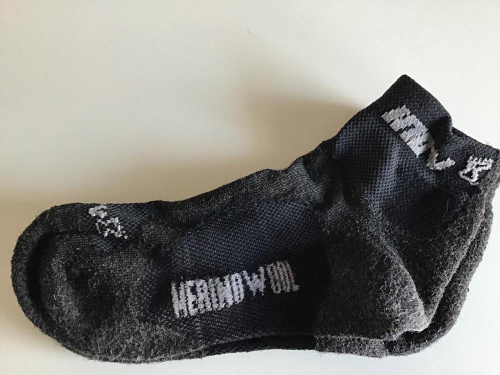 3. Hallo zusammen, bin ein ausgesprochener Fan von INOV8, ohne hier Schleichwerbung machen zu wollen. Und nutze aus Gewichts- und Geruchsgründen als Socken für meine letzten Weitwanderungen INOV8 Merino Sock mid. Die wiegen in Größe 40-43 nur 36 Gramm. Sie sind extrem haltbar. Ich laufe auf Tour mit 2 Paar im täglichen Wechsel und bei täglicher Wäsche mit Auswringen nun schon mindestens 1.500-2.000 Kilometer. Darn Tough sind dicker, sicherlich hochwertiger vom Merino-Material her (hab 2 Paar, 1x mittellang, 1x kurz), wiegen aber in der kurzen Variante bereits 64 Gramm das Paar. Und eine schnelle Trockenzeit würde ich denen nicht unterstellen. Haben jedoch bekanntermaßen eine lebenslange Garantie. Die Socken bestehen an den Schweiß"relevanten" Stellen aus Merinowolle, an den anderen Stellen (Rist oben und Bogen unten) aus stabilem Stoffgewebe, kein Merino. Sie sind relativ schnell (= in einer Nacht, wenn man bis ca. 17:00 Uhr gewaschen hat) morgens trocken, maximal noch geringfügig feucht, zum wieder anziehen jedoch ausreichend. So habe ich die Vorteile von Merinosocken (Wärme sogar im feuchten Zustand, wenig Geruchsbildung), eine - wie ich meine - irre lange Haltbarkeit, ordentliche Trocknung (nicht so gut wie Synthetiksöckchen) und das für mich geringe Gewicht. Der Doppelpack kostest (heute z.B. aus England von ultralightoutdoorgear mit Versand) 18,22 Euro, macht 9 Euro pro Paar. Kann hier und da mal preiswerter sein, wenn man immer wieder mal eine Weile über ein Quartal sucht. Bekam zufällig heute eine Verfügbarkeitsbenachrichtigung und wollte nicht mehr warten. Einer meiner Lieblings-Ausrüstungsgegenstände. Kennt jemand tollere, gleich leichte oder leichtere Alternativen für mich? So long DonCamino Variante, die ich immer hatte: Mudroc = mehr Merino. Bigtree hat beide Varianten: https://www.bigtree.de/bekleidung/?keywords=Inov8+Merino+Mid&searchsubmit=1 Variante mit weniger Merino (die auch nur noch bei INOV 8 selbst gelistet sind): https://www.ultralightoutdoorgear.co.uk//equipment-c3/socks-gloves-mitts-hats-c151/socks-c158/merino-sock-mid-twin-pack-p8124/s36535 Hier Fotos von neuen (long), oft getragenen mid und neuen Darn Tough kurz. Natürlich auch eine Frage des Packmaßes.