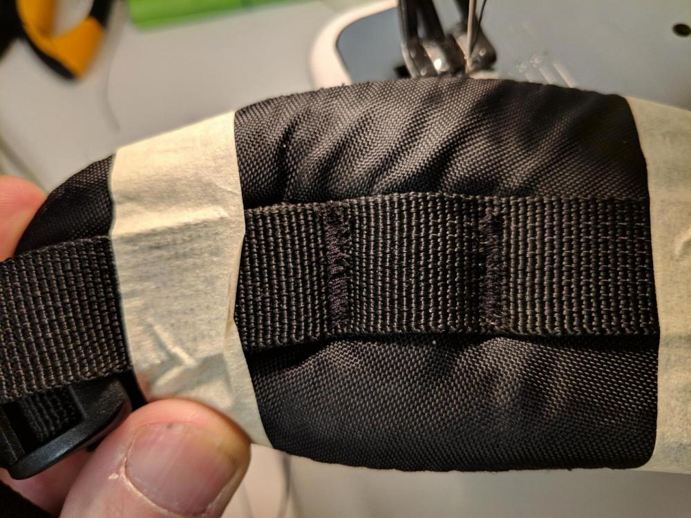 Liebe Kollegen und Kolleginnen des Ultraleicht-Trekkings Ich bin neu hier und sage erst einmal hallo zu Euch und bedanke mich für die vielen tollen Beiträge der aktiven Gemeinschaft, die mir schon oft weitergeholfen haben. Ich habe vor kurzem damit begonnen, meine Ausrüstung selbst herzustellen und bin totaler Anfänger, was das Nähen an Nähmaschinen betrifft. Mein erstes Projekt ist das Annähen eines 20mm Polypropylen-Gurtes an einen Schultergurt eines Rucksackes, um einen Brustgurt zu spannen. Ich verwende eine Pfaff 1212, eine 100er Jeans-Nadel und 50Nm oder 80Nm Polyestergarn von Extremtextil. Stichart: Steppstich, Ziffer 3. Oberfadenspannung auf Standard (ungefähr Ziffer 4) bzw. in verschiedenen Versuchen schrittweise bis Ziffer 7 erhöht. Ich bekomme bis jetzt kein sauberes Nahtbild hin. Oft verheddert sich der Unterfaden, insbesondere, wenn ich die Naht im Rückwärtsgang vernähen will (siehe Bild). Es kommt dann auch vor, dass die Nadel auf die Stickplatte schlägt. Die Maschine ist gewartet und vom Fachmann eingestellt. Die Nadel wurde zentriert und justiert. Der Schultergurt passt mit etwas Druck unter den Nähfuss. Ich habe mit und ohne Obertransport IDT gearbeitet und konnte auf beide Weise kein gutes Resultat erzielen. Ich kann gut und sauber (für meine Verhältnisse) bis zu drei Gurtbänder übereinander nähen (siehe Bild). Hat mir jemand einen Tipp zum Setup (Nadel, Garn, Stichart, etc.) oder sonst einen Tipp, wie man diese Sache am besten vernähen kann? Liegt es vielleicht einfach an der Näh-Technik? Oder kommt die Maschine einfach an ihre Grenzen? Ich bin für jeden Tipp sehr dankbar. Herzlichen Dank und freundliche Grüsse aus der Schweiz Peter