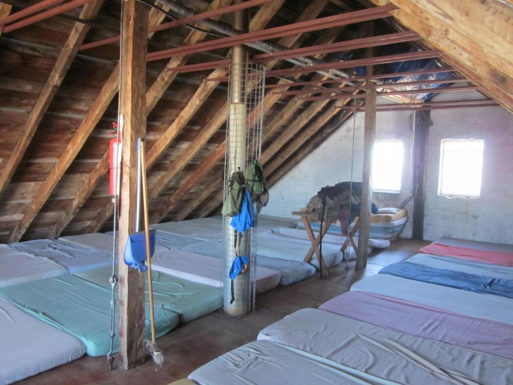 14. Zum GR221 findet man glaube ich alle Informationen, die man benötigt, sehr gut aufbereitet im Internet. Da ich einigermaßen ordentlich Spanisch spreche, bin ich auf dem Weg allerdings auch mit Einheimischen ins Gespräch gekommen, die mich auf zwei tolle Übernachtungsmöglichkeiten hingewiesen haben: Nach Sóller geht der GR221 durch den Barranc de Biniaraix nach oben. Wenn man bereit ist, etwa 30 bis 40 min. zusätzlichen Weg (~2 km und 200 hm) in Kauf zu nehmen, kann man einen Abstecher auf den Els Cornadors machen (das rechte Horn auf dem ersten Foto) und dort in einer Schutzhütte übernachten. Von dort hat man eine tolle Aussicht und die Schutzhütte ist (derzeit) in einem sehr guten Zustand. Hütte und Weg sind in der OpenAndroMaps-Karte eingezeichnet. Kurz bevor man das Ende des gepflasterten Wegs erreicht, vor einer Linkskurve, etwa bei Höhenmeter 700 geht ein ausgeschilderter Pfad nach rechts ab. Der Weg ist zum Teil markiert und gut zu finden, er ist einfach zu gehen und nicht besonders ausgesetzt o.ä. Wasser kann man auf dem Weg nach oben im Barranc de Biniaraix mitnehmen, am nächsten Tag habe ich dann wieder Wasser am Font des Noguer abgezapft (kein Trinkwasser, muss man behandeln). Davor hätte es auch schon Wasser gegeben, das war mir aber nicht so sympathisch. Jeder, der nach Pollenca kommt, dürfte dort den Hügel mit dem markanten Turm sehen (vgl. das zweite Foto). Das ist der Puig Maria und der Turm gehört zu einem ehemaligen Kloster. Man braucht etwa 30 bis 40 min. nach oben. Dort gibt es 12 einfache Zimmer mit Dusche/WC auf dem Gang, in denen man ziemlich günstig übernachten kann (wir haben glaube ich für ein Doppelzimmer 25 EUR gezahlt - weiß aber nicht, ob das ein Sonderpreis war, war mit einem Mallorquiner dort, der Gott und die Welt kennt). Man kann dort oben Essen und Getränke kaufen, man kann sich aber auch sein Essen mitbringen und in dem tollen alten Refektorium essen. Man hat von dort eine ganz wunderbare Rundumsicht auf Port de Pollenca, Alcúdia, Can Picafort und natürlich auch die Berge, von denen man gekommen ist (das dritte Foto zeigt die Aussicht aus unserem Zimmer). Buchen kann man allerdings glaube ich nur telefonisch.