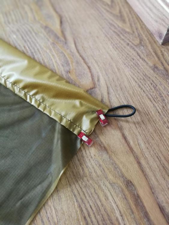 Der Bivy wurde grob nach Anleitung von Alex/Bergreif gefertigt. Ich habe mich für drei Gurtbandschlaufen entschieden um den Sack an drei Stellen nach oben hin zur Ridgeline oder zu einem Baum, etc. abzuspannen, damit etwas Luft in den Sack kommt. Die Materialien: Oberfläche: Ripstop-Nylon, daunendicht, soft, 20den, 40g/qm oliv Boden: Ripstop-Nylon Zeltstoff, silikonbesch., 40den, 55g/qm sand Moskitonetz: Polyamid, 155 Maschen/qcm, 25g/qm, ultraleicht Reißverschluss: YKK 3C Reißverschluss Meterware schwarz Reißer: YKK 3C Reißverschluss Meterware schwarz Nähgarn: Nähgarn rasant, 75Nm, PES-BW-Corespun, 1000m schwarz Bungee-Seile (hatte gerade nichts anderes): Lanex, elastisches 4mm Seil Wegen der Abmessungen und der Anleitung empfehle ich einen Blick auf Alex' Seite: https://www.bergreif.de/2018/04/11/ultraleichten-myog-biwaksack-naehen/