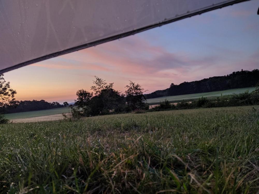 Ich war für 10 Tage mit meinem GWC auf dem HW1 unterwegs. Schön, dass man sich im Halbschlaf trotz 360°-Wetterschutz an der Morgendämmerung erfreuen kann.