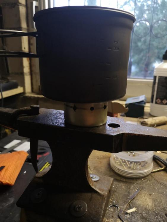 Erleichterung habe ich mir verschafft... Mein 5 gramm kocher aus einer Katzenfutterdose der gleichzeitig topfständer ist spart mir ganze 8 gramm! Nix neues aber ich kam einfach nicht drauf... Freude -