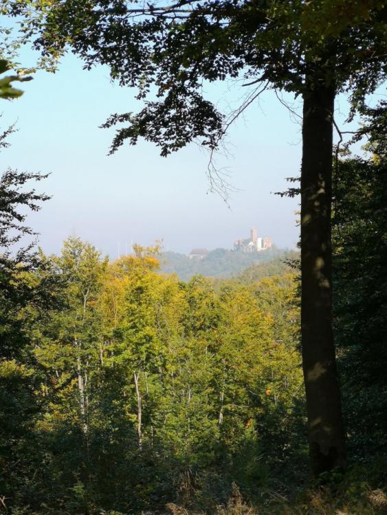 Rennsteig: Hörschel bis Grenzwiese Nachdem das im letzten Jahr mit Schottland nichts wurde, habe ich jetzt meinen Mut zusammengenommen und bin mal in Deutschland los. Ob das was für mich ist, weiß ich leider nicht: Rucksackgewicht unterschätzt (das ist ja fast wie für Schottland, nur kein Zelt). Am ersten Tag überanstrengt (völlig untrainiert, da wochenlang überarbeitet), abends die Quelle nicht gefunden, dadurch 3 km Zusatzweg in schon recht fertigem Zusatnd - den ganzen Tag mit Gepäck laufen schaffe ich wohl nicht. Zu wenig getrunken und gegessen. Hatte die ganze Nacht Rückenschmerzen, beginnende Migräneattacke und möglicherweise Allergiesymptome (Daunen? Bitte nicht!). Ich habe mich dann (nachdem mein Gesicht morgens wieder abgeschwollen war) noch auf den großen Inselberg geschleppt (alle 20 m Pause, Migräne beeinträchtigt auch mit Medikament) und bin dann nach 1,5 Tagen wieder nach Hause gefahren - geplant hatte ich etwa 3 Tage als Schnuppertour. Vor Ort habe ich sehr geflucht, im Nachhinein war es doch schön. Immerhin war es mir Frostbeule nachts bei 0 Grad kuschelig warm und ich musste den Schlafsack öffnen. Und der Kocher funktioniert ganz hervorragend. Berlin am Morgen: Start um halb 11 in Hörschel: Wartburgblick Ausblick am Abend (vom Sternenhimmel kann ich nur schwärmen.): Als ich am Morgen eine Straße überquerte, sprach mich ein Radfahrer an. Ob ich den Rennsteig gehe? Er würde mir empfehlen, links abzubiegen und einen kleinen Umweg über den Gerberstein zu machen, dort hätte man einen der schönsten Ausblicke Thüringens - bis in die Rhön hinein. Also bin ich da hochgeschnauft. Hat sich gelohnt. "Frühstück" im schönsten Sonnenschein mit grandiosem Ausblick auf dem großen Inselberg. (Um halb 12 hatte die Migränetablette so weit angeschlagen, dass ich endlich was essen konnte.)