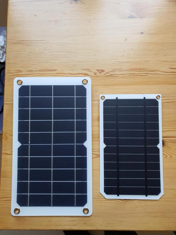 Leider gibt es momentan die leichten Panels von Lösung 5 in Deutschland nicht mehr zu kaufen. Ich teste daher gerade diese beiden hier. Beide bei Amazon bestellt. Das kleinere mit den alten 2BB Zellen bringt in voller Dezembersonne 3W - leider nicht genug zum Laden meiner kleinen Lipo Powerbank mit 5.000mA/h. Das größere hatte leider bereits Risse als es bei mir ankam, so dass ich es gleich zurückgeben habe, ohne zu Testen. Das kleinere wiegt nach dem Abschneiden der Räder 134g und ist damit noch deutlich schwerer als das aus Lösung 5. Ich verwende diese Powerbank https://www.amazon.de/dp/B07RFVK6BQ/ und bin sehr zufrieden damit. Sie wiegt 108g und kann mein Note 10 Plus genau einmal voll aufladen. Ich bin weiterhin auf der Suche nach einem leistungsstärkeren Panel und werde berichten.- 446 Antworten