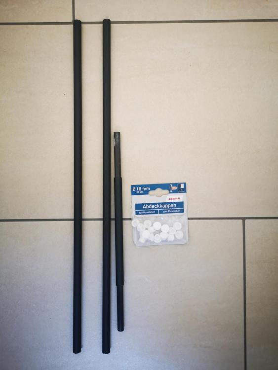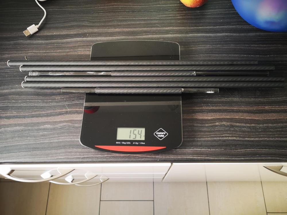 Ich habe meine Stangen für das Lanshan 2 jetzt auch ausgiebig getestet. Doch 3 teilige, allerdings anders ausgeführt. Das Mittelteil ist ein 12mm Carbonstück in 150mm Länge. Durch dieses geht ein 10mm starkes Carbonstück in 300mm Länge festverklebt. Da werden oben und unten einfach die 500mm langen Teile aufgesteckt. Als Endkappen kommen Schraubenabdeckungen aus dem Baumarkt zum Einsatz. Gesamtgewicht 154g für 2 Stangen mit je 1150mm Länge.
