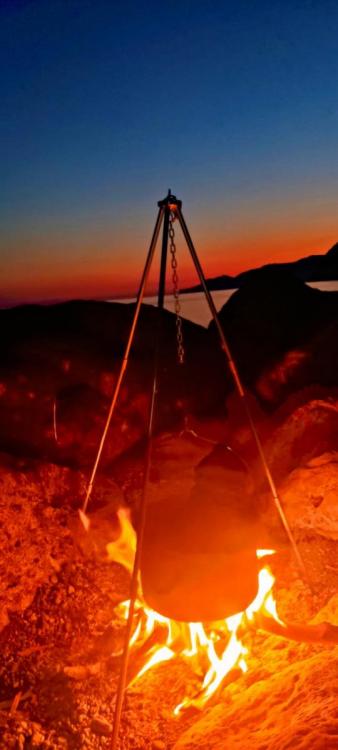 Für Gruppen habe ich einen Naturhike 4 L Alu HA Kessel mit Henkel, den hab ich schon überm Lagerfeuer mit Dreibein getestet. -