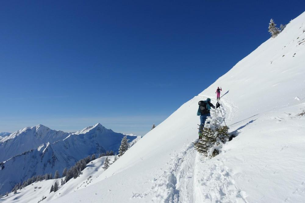 @ThomasK oh Mann, Gratulation zum gelungenen Timing. Ich war am Mittwoch ein paar Kilometer entfernt am Karlstor bei ganz anderen Wetterbedingungen. Morgens eisig, mittags eisig, absolut kein Fotowetter. Das Bild vom letzten Anstieg ins Joch: Die braunen Flecken sind Triebschnee mit dem Saharastaub der letzten Wochen. Um hier vielleicht doch noch jemanden mit einer winterlichen Impression zu erfreuen, muss ich ins Bildarchiv von letztem Jahr greifen, Januar 2020 am Portlahorn im Bregenzer Wald:
