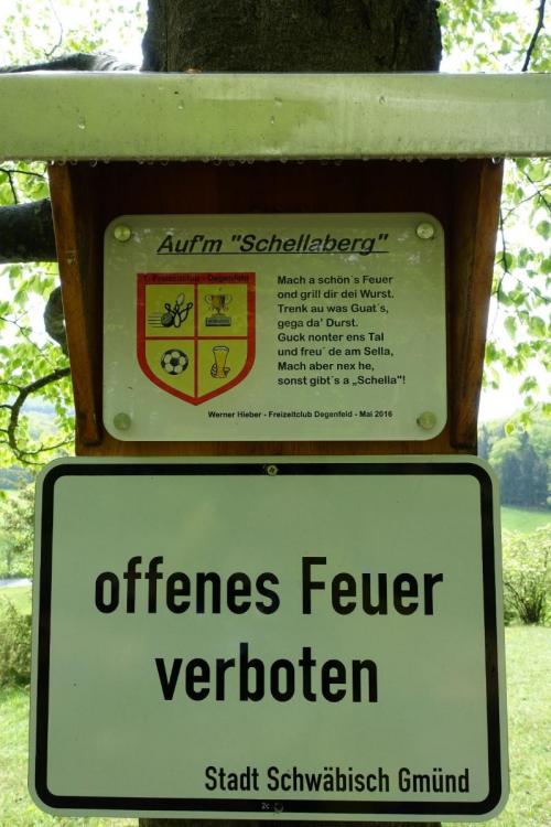 OT: Ohje - ich hatte noch gar nicht daran gedacht, dass mein letzter Beitrag hier in einem "Leicht und seicht" Faden auch das Potential hat erneut über das Thema "verantwortungsvoller Umgang mit Feuer" zu sprechen. Wenn ich das Emoji von @fatrat richtig interpretiere, dann findet er es schade, dass das im Gedicht vom Freizeitclub geschildertete Freizeitvergnügen "Feuerle macha - Würschdle grilla" von der Stadt untersagt wird. Finde ich prinzipiell auch schade. Die Stadtverwaltung lässt sich aber auch gut verstehen, wenn man den Kontext kennt. Hier noch eine Aufnahme mit der Umgebung um das Schild herum. Vorne links im Bild wurden Steine verlegt, dort hat man vermutlich immer mal wieder Feuer gemacht. Die Bank vor dem Schild ist an den Baum angekettet (!), vermutlich um eine Verwendung als Brennmaterial zu verhindern (im näheren Umkreis findet man kein Totholz, ist alles abgesammelt). Direkt angrenzend ist Heidelandschaft mit Magerrasen, bei Trockenheit brandgefährlich. Zumal es keine richtige Feuerstelle gibt, also eine windgeschützte Einfassung, die Funkenflug vermindert. OT: Kurios fand ich die zwei Schilder mit genau gegensätzlicher Aussage trotzdem.