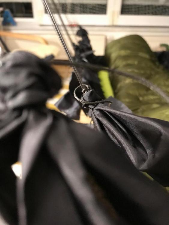 so es ist ein wenig Zeit vergangen, aber meine Matte ist fertig Ich wollte eigentlich erst ein paar ordentliche Bilder in der Sonne machen, aber das scheint aktuell ein nahezu unmögliches Vorhaben zu sein, deshalb meine Erkenntnisse so um es anderen leichter zu machen: vielen Dank an @Konradsky für die Hilfe und die Geduld ich habe bei der Länge der Schnüre mit Konrads Werten angefangen, habe inzwischen am Kopfbereich aber deutlich mehr Länge um relativ flach zu liegen. Wahrscheinlich habe ich alle Längen schon 3-4x angepasst. Das sollte man wirklich nicht unterschätzen, das ist zeitintensiv. Der doppelte Schotstek hat für mich als Knoten besser gepasst. Lässt sich leichter Knoten, hält bei mir problemlos und ist auch wieder zu öffnen. Nach der zweiten oder dritten Längenanpassung habe ich nur noch aus dem "Tiefpunkt" der beiden Zacken gemessen, dadurch ist jetzt teilweise die "Zacke" und teilweise die Kordel länger. Das kann man deutlich schöner lösen (haben die anderen ja gezeigt - muss man dann nur noch dran denken ) Meine Thermarest Trekker mit 183*51cm ist wirklich sehr ungeeignet! Durch den rutschigen Boden konnte ich quasi nicht einsteigen, die Matte ist komplett weggerutscht und hat sich durch die Querkammern noch schön zusammen geschoben. Ich hatte noch eine Anti-Rutsch Matte für unter Teppiche, das hat mir geholfen um überhaupt einsteigen zu können. Im nächsten Schritt steht bei mir eine LW Matte an. Habt ihr zufällig schon Erfahrungen mit den Matten vom Amok gemacht? Durch die Draumr sollten sie ja eigentlich wissen worauf es an kommt. Und noch ein paar Bilder bevor die erste Testnacht (im Wohnzimmer) ansteht..