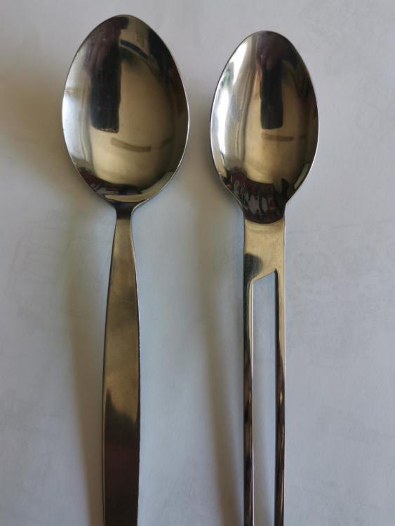 Ich verwende dieses Besteck ( Gabel , Löffel ) bzw. ein Baugleiches aus China über Ebay Kleinanzeigen gekauft. Ich wollte auch relativ "normales" Besteck haben. Ich empfinde die Größe von Gabel und Löffel als sehr angenehm.