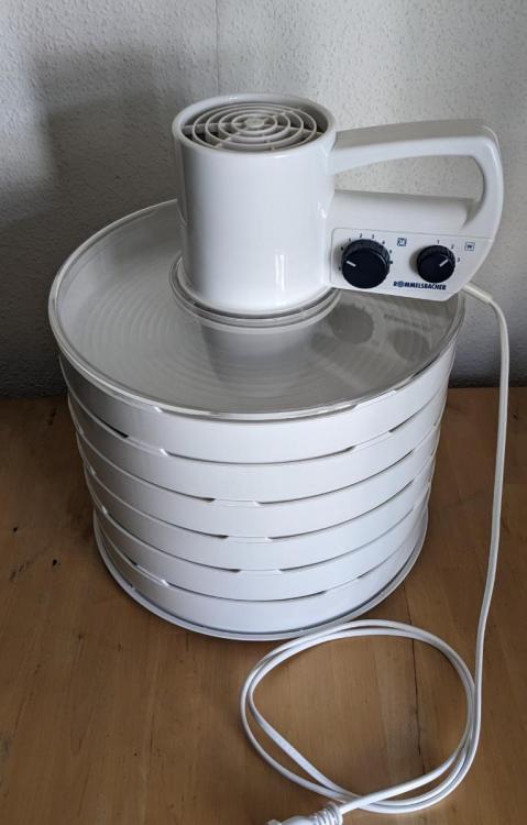 Moin, der Dörrautomat wurde nur zwei mal benutzt und ist in einem sehr guten Zustand. Mit dabei ist eine Erweiterung auf sechs Etagen und die OVP. https://www.rommelsbacher.de/doerrautomat-da-750 https://www.rommelsbacher.de/doerretagen-de-100-2-stueck Preisvorstellung: 75;- plus Versand als DHL Paket.