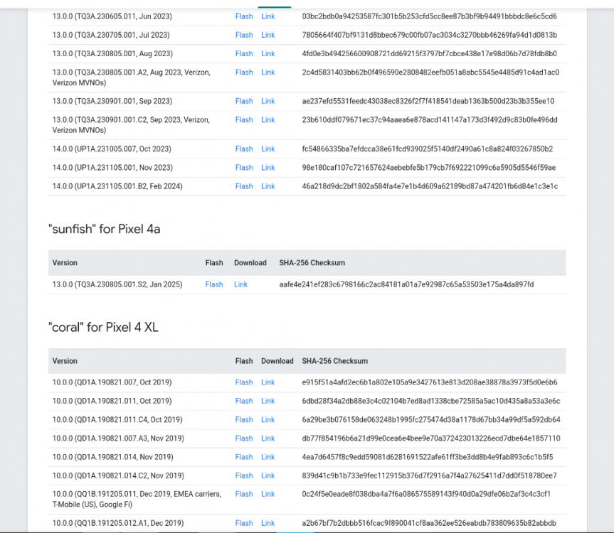Auch schön, wie es für das 4a nur dieses eine letzte Image gibt, während für die anderen Geräte alle Images zur Verfügung stehen.