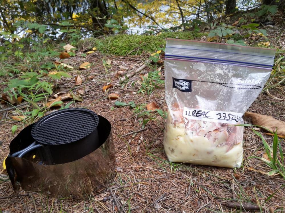 Und nun mal was ganz anderes. Für's FBC nutze ich gerne die wieder verschließbaren Tüten von Toppits - in dem Fall nun die recht neuen SafeLoc. Sie sind bis 90° Hitze resistent, haben einen praktischen Standboden und lassen sich im Vergleich zu den Vorgängern wirklich einfach verschließen und öffnen. Dabei bleiben sie absolut dicht. Klasse Teile! ABER: Leider ist die kleinste 1-Liter Variante mit 17x17cm recht groß für eine Mahlzeit dimensioniert und selbst der langstielige Löffel verschwindet beim löffeln fast in der Tüte. Eine halb so große Variante würde dafür völlig ausreichen. Bin aber bisher nicht fündig geworden. Gibt es solche Tüten? -