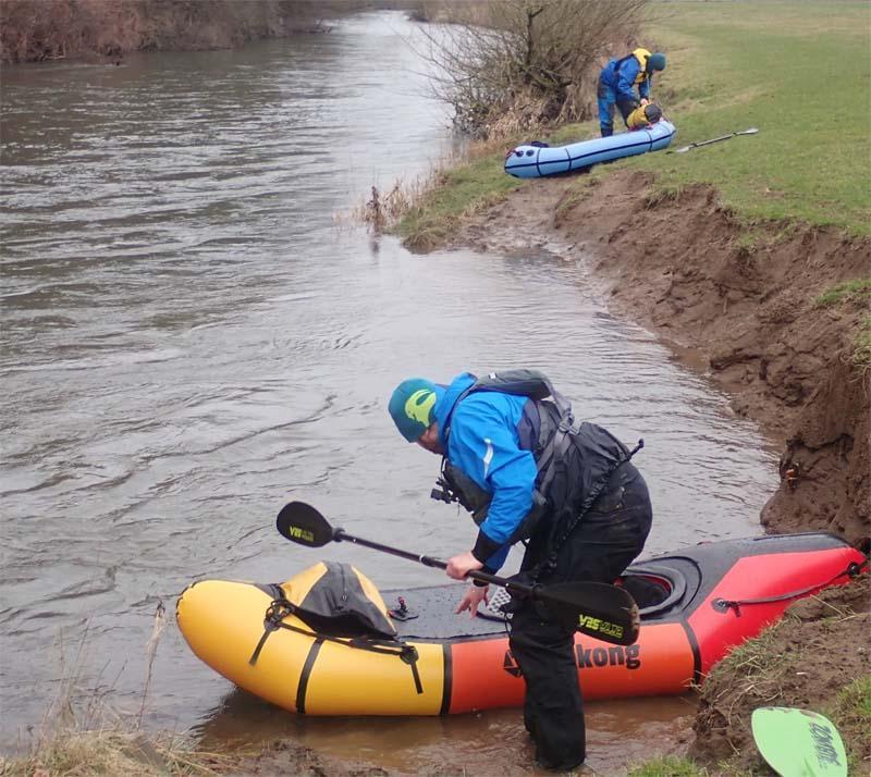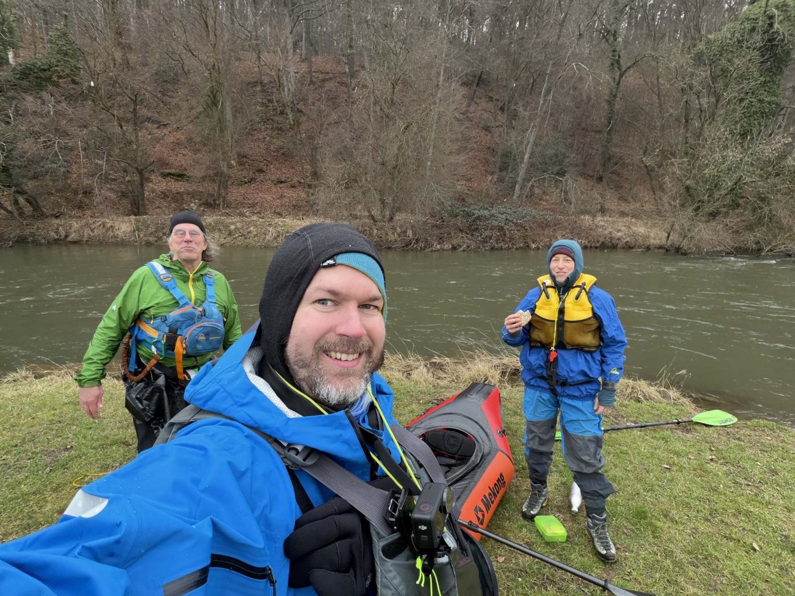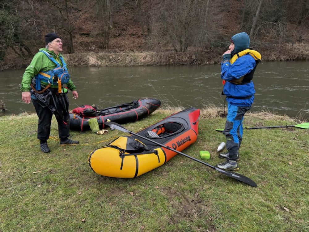 Hier dann ein kleiner Bericht zu der Tour Bis ein paar Tage vor der Tur, war ich mir ja unsicher, ob überhaupt durch Niederschlag genügend Pegel für die Sülz zusammen kommt, oder wir auf die Agger, die nicht so viel Entertainement bietet, ausweichen müssen. Dann hat es aber in den letzten 48 std vor dem Paddeln derartig geschüttet, daß das kein Thema mehr war, aber umgekehrt, ob der hohe Pegel nicht unsere Mitpaddlerin in ihrem Delta mit rel wenig Paddelerfahrung überfordert.. Bei Dennis & mir ist das ja kein Thema und ihm kam das gerade recht, um sein neues fränzösisches Wildwasser-Packraft zu testen. Am Vorabernd hat Dennis beim Rumsurfen noch ausgegrabern, daß momentan durch Rep-Arbeiten der Ausstieg bzw Umtragen direkt am rösrather Wehr nicht möglich ist. Am Morgen trafen wir uns am Austieg des KC Delphin an der Agger, ca 1 km vor dem Aggerwehr, liessen mein Auto dort stehen und fuhren mit Dennis Auto zuerst zum rösrather Wehr, um zu schauen, wie dort in der momentanen Baustelle das Umtragen möglich ist (ja möglich, aber ziemliche Schlammschlacht) und dann weiter zum hoffnungstaler Wehr, um zu schauen, ob ein Umtragen für unsere Mitpaddlerin möglich ist (Knackpunkt ist der provisorische Ausstieg, da da bei höheren Pegeln Strömung drauf steht) da dies recht suboptimal aussah und zusätzlich die Äste an der „Treppe“ des Wehrs so tief hingen, daß wir ein gutes Risiko sahen, daß wir 2 bei Durchfahrt von den Ästen aus dem Boot geräumt werden, haben wir es uns easy gemacht und alle 3 zusammen hinter dem Wehr eingesetzt. Später am rösrather Wehr gab es dann die erwartete Schlammschlacht beim Umtragen, das Waldstück hinter Rösrath schoen und etwas herausfordernd durch die Kurverei um die Bäume, dort habe ich darauf geachtet, für unsere Mitpaddlerin eine gute Linie vorzugeben. Unterwegs machten wir eine längere Pause, um unsere Vorräte zu vertilgen und kamen dann rechtzeitig deutlich vor dem Dunkelwerden wieder am KC Delphin an. Fazit : Eine schöne Tour bei mittlerem Pegel, unsere Mitpaddlerin mit ihrem Delta hat prima mitgehalten, die könnte jetzt bei hohen Pegeln auch mit einem WW-Packraft mitpaddeln... Wir werden bestimmt in den nächsten 1-2 Monaten noch 1-2 Touren dort machen, evtl auch mal eine längere Strecke (Sülz Haus Thal → Agger → Sieg → Rhein) auf 2 Tage verteilt mit Zelten / Grillen, wenn jemand gerne mitkommen will, kann er mir auch schon vorab eine PN schreiben... ein paar Pics von der Pause... Das Schlamm Abspritzen und anschliessend auf der Terrasse trocknen hat dann im weiteren Verlauf des WE anders geklappt, als gedacht