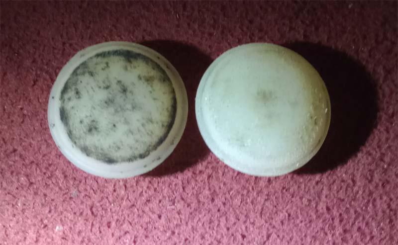 Da ich eben mal wieder ein paar alte Dichtstopfen mit 180er Schleifpapier "sauber gemacht habe" hier mal ein Pic von 2 Stopfen, einer vor Überarbeitung einer nach ner min mit 180er Schleifpapier (die letzten Reste bekäme man bestimmt auch noch ab, aber mir reicht das so, habe ihn hinterher nur noch schnell in der Oberfläche plan gezogen)... Also ich kann nur empfehlen, das mal auszuprobieren, 1-2 min Arbeit, bisschen Schleifpapier... -