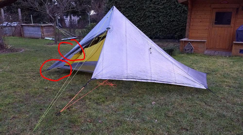 @Rapapongi Ich würde versuchen das Zelt erst "perfekt" aufzustellen und zwar ohne den 4 Flächenabspannpunkten und diese erst als letztes leicht abspannen. Auf Deinen Fotos schaut die Geometrie des Zeltes schon komisch aus (um nicht "hässlich" zu sagen). Hexamid Pocket Tarp: