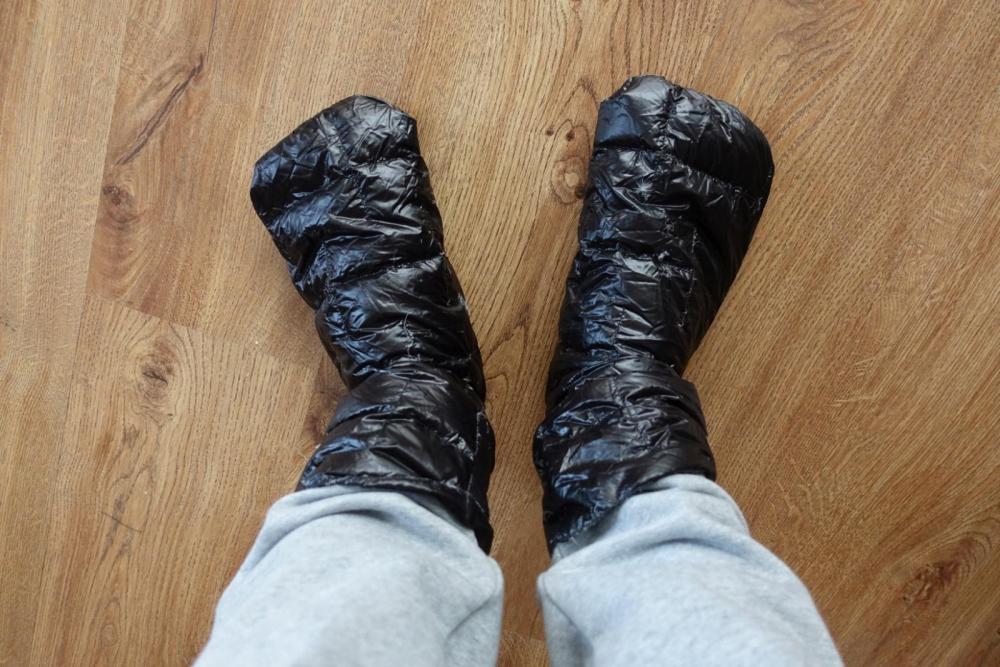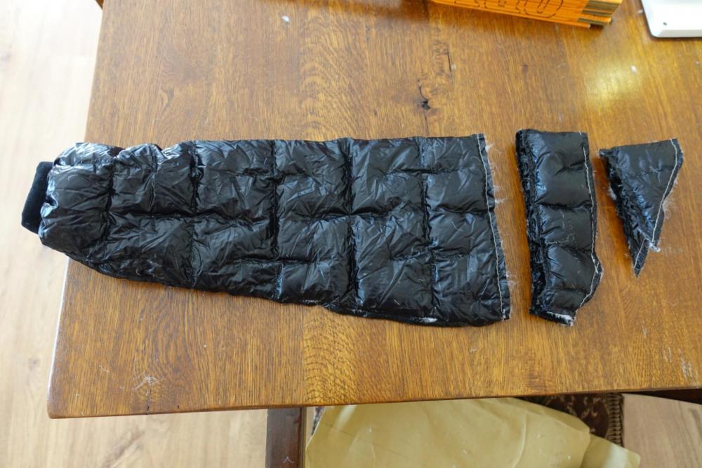 Daunenweste und Daunensocken aus einer zu kleinen Daunenjacke