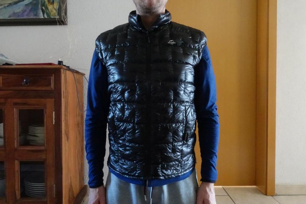 MYG - Modifiy Your Gear: Daunenweste und Daunensocken aus einer zu kleinen Daunenjacke Corona Time is MYOG Time: In den letzten Wochen habe ich die Abende für einige MYOG Basteleien genutzt. Dabei sind einige ganz nützliche Sachen aber auch ein paar Spielereien herausgekommen. Hier ein MYG (Modify Your Gear): In einem schwachen Moment habe ich bei einer 180g Daunenweste von Naturehike auf „kaufen“ geklickt. An sich eine tolle Weste, allerdings passen die Größen so überhaupt nicht. Ich hatte L bestellt, damit ich etwas „Reserve“ für Feiertag etc. habe. Allerdings fällt L so groß aus wie normalerweise ein sehr knappes M. Tja was tun: Abnehmen fällt aus, verkaufen wäre eine Option. Andererseits wollte ich schon immer eine kleine, leichte Daunenweste und ein paar Daunenschuhe / Daunensocken. Also habe ich aus der Jacke eine Weste und Daunenschuhe gebastelt und dabei außerdem die Weste eine Nummer größer gemacht. Ich beschreibe das mal etwas ausführlicher, weil ich keine anderen Berichte dazu kenne. 1. Schritt: Anzeichnen, wo die Ärmel abgetrennt werden sollen. Ich wollte die Ärmel nicht zu knapp abschneiden, damit ein schöner Dichter Abschluss entsteht. 2. Schritt: ca. 7 mm links und recht der Linie steppen. Ich habe für die obere Naht einen weißen Faden verwendet, weil ich die Naht später auftrennen wollte. 3. Jetzt wird’s hart: Schere ansetzen und entlang der Markierung die Ärmel abschneiden. Durch die Steppnähte lösen sich kaum Daunen.Ich habe ein paar Daunen weggezupft, um die Kante später besser verarbeiten zu können. 4. Da die Jacke ja zu klein ist, brauche ich 2 Streifen Daunenmaterial um sie in die Weste einzusetzen und die Weste so im Umfang zu vergrößern. Also wieder anzeichnen, links und rechts davon steppen und dann den Streifen abschneiden. Da der Streifen ein wenig zu kurz ist, habe ich die Streifen mit den kleinen abgeschnittenen Stücken verlängert. 5. So jetzt wird die Weste verbreitert. Also: neben der bereits vorhandenen Seitennaht in 14mm Abstand steppen und danach die Weste mit 7mm Abstand zur Seitennaht aufschneiden. 6. Nun wird der Streifen eingenäht. Die neuen Nähte habe ich nur mit einem 1mm Zick-Zack entlang der Kante versäubert. 7. Den eingenähten Streifen in der richtigen Länge kürzen – fertig! Mit der Weste bin ich sehr zufrieden. Sie wiegt in echter Größe L 133g, lässt sich schön klein verpacken und wärmt überraschend gut. Die Weste passt sehr gut und ist glücklicherweise nicht zu kurz. Vor allem der Ärmelabschluss gefällt mir sehr, weil die Weste gut abschließt und die Schulter noch abdeckt. In Kombination mit einer Windjacke eine tolle Sache! Aus den abgeschnittenen Ärmeln wollte ich noch Daunensocken machen: Man könnte die Ärmel auch vorne zunähen und einfach so anziehen. Aber ein gerader Schlauch passt einfach nicht so gut. Also ans Werk: 1. Anzeichnen und wieder links und rechts davon steppen. Ich habe den Winkel so gewählt, dass die Daunensocken später einen etwas flacheren Winkel als 90° haben. Beim Schlafen sind die Füße halt etwas gestreckter. 2. Entlang der Markierung auseinander schneiden 3. Um 180° gedreht wieder zusammennähen. Die Kanten habe ich wieder mit Zick-Zack versäubert. 4. Die Fußspitze schließen und das vorhandene Elastikbündchen abtrennen. 5. Alle übrigen Kanten versäubern Auch die Daunensocken sind toll: Sie wiegen zusammen 31g und wärmen wunderbar. Das ganze war übrigens weniger aufwändig als ich dachte und hat mich ungefähr 1 Abend beschäftigt.