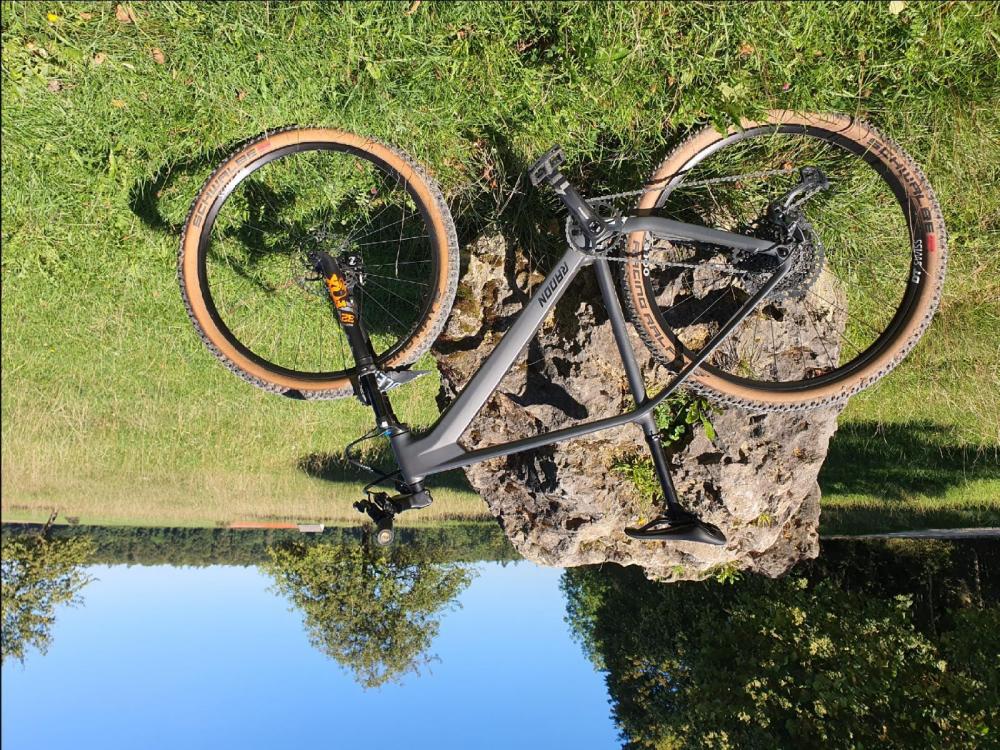 So, ich wollte kurz Rückmeldung geben. Hat ja etwas länger gedauert, weil einfach viele andere Dinge passiert sind, aber ich habe gerade ein Jealous zu einem akzeptablen Kurs geschossen und bin gerade auf einer Testrunde durch den heimischen Wald - was soll ich sagen? Ich glaub das Teil ist das richtige für mich. Sau leicht, geht gut bergauf, die Pfade kann ich recht flüssig fahren, viel besser als mit den umgerüsteten Rennrädern. Ich hab echt Bock wieder mehr Rad zu fahren. Gerade so etwas langweilige Wanderwege hier auf der Alb, die zu Fuß nicht so reizvoll sind, habe ich richtig Lust mit dem Rad zu erkunden. Gewöhnungsbedürftig finde ich die Einfach-Schaltung mit der nicht besonders feinen Abstufung (komme vom Rennrad) und den Hebel von SRAM (bin bisher nur Shimano gefahren). Glaube aber das sind Feinheiten und für die Art Touren die ich machen werde zu verschmerzen. Jetzt muss ich bald an die Nähmaschine und Taschen basteln! Danke für die Überlegungen, Ideen und Anregungen hier! Und so sieht es aus: Edit: in Wirklichkeit steht es natürlich richtig rum, wir bekomme ich das hier mit dem Foto auch hin??? -