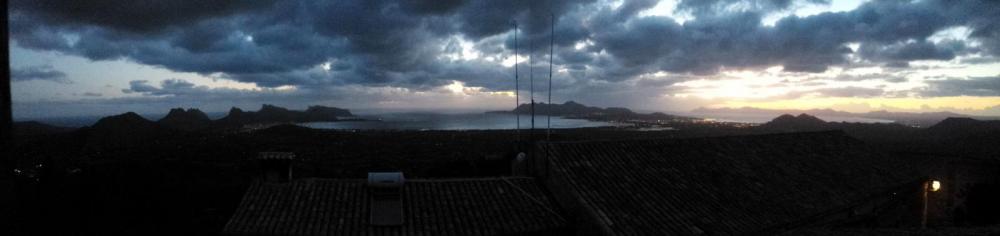 Zum GR221 findet man glaube ich alle Informationen, die man benötigt, sehr gut aufbereitet im Internet. Da ich einigermaßen ordentlich Spanisch spreche, bin ich auf dem Weg allerdings auch mit Einheimischen ins Gespräch gekommen, die mich auf zwei tolle Übernachtungsmöglichkeiten hingewiesen haben: Nach Sóller geht der GR221 durch den Barranc de Biniaraix nach oben. Wenn man bereit ist, etwa 30 bis 40 min. zusätzlichen Weg (~2 km und 200 hm) in Kauf zu nehmen, kann man einen Abstecher auf den Els Cornadors machen (das rechte Horn auf dem ersten Foto) und dort in einer Schutzhütte übernachten. Von dort hat man eine tolle Aussicht und die Schutzhütte ist (derzeit) in einem sehr guten Zustand. Hütte und Weg sind in der OpenAndroMaps-Karte eingezeichnet. Kurz bevor man das Ende des gepflasterten Wegs erreicht, vor einer Linkskurve, etwa bei Höhenmeter 700 geht ein ausgeschilderter Pfad nach rechts ab. Der Weg ist zum Teil markiert und gut zu finden, er ist einfach zu gehen und nicht besonders ausgesetzt o.ä. Wasser kann man auf dem Weg nach oben im Barranc de Biniaraix mitnehmen, am nächsten Tag habe ich dann wieder Wasser am Font des Noguer abgezapft (kein Trinkwasser, muss man behandeln). Davor hätte es auch schon Wasser gegeben, das war mir aber nicht so sympathisch. Jeder, der nach Pollenca kommt, dürfte dort den Hügel mit dem markanten Turm sehen (vgl. das zweite Foto). Das ist der Puig Maria und der Turm gehört zu einem ehemaligen Kloster. Man braucht etwa 30 bis 40 min. nach oben. Dort gibt es 12 einfache Zimmer mit Dusche/WC auf dem Gang, in denen man ziemlich günstig übernachten kann (wir haben glaube ich für ein Doppelzimmer 25 EUR gezahlt - weiß aber nicht, ob das ein Sonderpreis war, war mit einem Mallorquiner dort, der Gott und die Welt kennt). Man kann dort oben Essen und Getränke kaufen, man kann sich aber auch sein Essen mitbringen und in dem tollen alten Refektorium essen. Man hat von dort eine ganz wunderbare Rundumsicht auf Port de Pollenca, Alcúdia, Can Picafort und natürlich auch die Berge, von denen man gekommen ist (das dritte Foto zeigt die Aussicht aus unserem Zimmer). Buchen kann man allerdings glaube ich nur telefonisch.