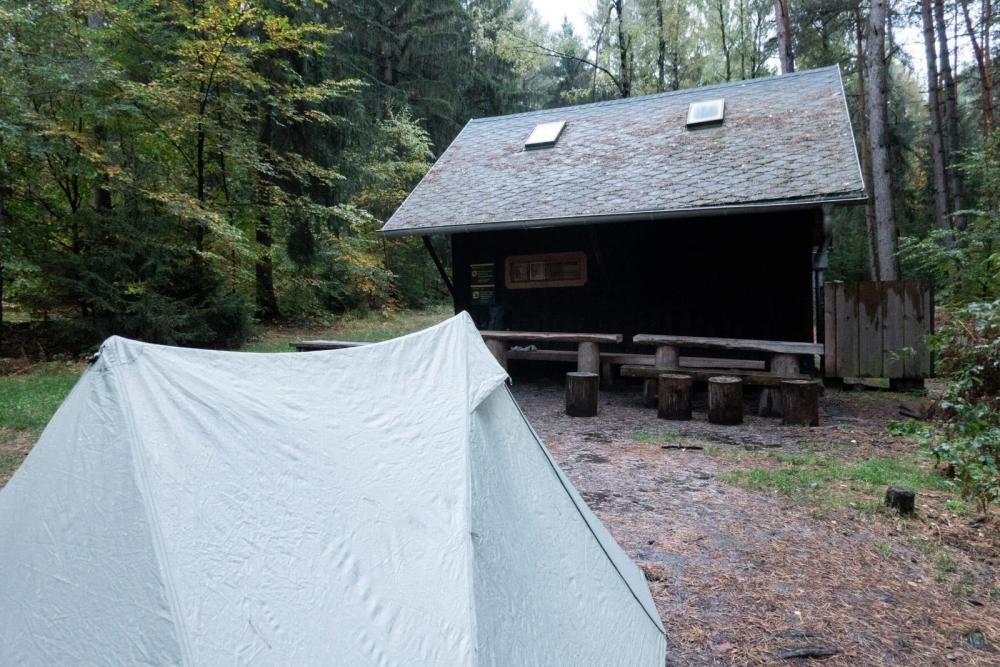 Nachdem ich den Heidschnuckenweg drei Wochen zuvor gelaufen bin, sollte die Wanderung auf dem Forststeig, die Lehren, die ich aus dieser vorherigen Wanderung gezogen habe, umgesetzt werden. Wo ich noch auf dem Heidschnuckenweg meine Limits ausgetestet habe, wollte ich nun einen guten Mix zwischen sportlichen Anspruch und Genuss finden. Angesetzt waren vier Übernachtungen, wobei jedoch beim ersten und letzten Tag jeweils die Hälfte des Tages für die An- und Abreise draufgehen sollte. Wo am Anfang der Wetterbericht noch bestes Wetter ankündigte, wurde die Vorhersage mit dem sich anbahnenden Starttermin zunehmend ungemütliche. Kurz bevor es losging, waren sogar kurzzeitige Gewitter angesagt. Entsprechend musste die Windjacke der Regenjacke weichen und ich machte mich darauf gefasst, im Fall der Fälle auch mal in einer Trekkinghütte zu übernachten. Zum Glück bietet der Forststeig da genügen Flexibilität, was die Übernachtungsmöglichkeiten betrifft und auch die Möglichkeit, die Strecke abzukürzen, fall es mal nicht alles nach Plan laufen sollte. Was die Ausrüstung betrifft, blieb fast alles beim Alten. Die Windjacke wurde durch die Regenjacke ersetzt. Statt dem Sunhoody kam ein langärmliges Merinoshirt mit, da nicht mit viel Sonne zu rechnen war. Da es aber trotzdem recht warm werden sollte, wurde der Alphafleece durch eine leichtere 60er-Variante ersetzt. Da auf der letzten Tour meine Füße die meisten Probleme bereiteten, habe ich hier besondere Vorkehrungen getroffen. Abgesehen davon, dass ich das Pensum heruntergeschraubt habe, wurden auch zusätzlich Linersocken von Injinji, ein Gleitstift für die Füße und ein paar Blasenpflaster eingesteckt. Zudem habe ich eine zusätzliche Powerbank mitgenommen, da meine Erfahrung von der letzten Tour gezeigt hat, dass ich mit einer geradeso vier Tage auskomme. Da ich die Zeit auf dem Forststeig nicht in Cafés verbringen wollte, um meine Powerbank aufzuladen und auch nicht vorhatte, auf einem Campingplatz eine Pause einzulegen, blieb dies die einzige Option. Die Packliste: https://lighterpack.com/r/96maek Schöna bis Taubenteich Biwak 17 km Los ging es am Dienstag nach einer fünfstündigen Fahrt von Hamburg nach Schöna, wo die Strecke startet. Einen Zwischenstopp habe ich in Dresden eingelegt, um mir beim lokalen Globetrotter vier Trekkingtickets zu besorgen, die man benötigt, um auf den Trekkingplätzen, welche der Forststeig verwaltet, übernachten zu können. In Schöna angekommen ist es noch sonnig und es zeigen sich sogleich die ersten Felsen. Vom Bahnhof geht es eine kleine Anhebung hoch und schon steht man mitten im Wald. Wo der Weg am Anfang noch, bis auf paar umgestürzte Bäume richtig gut zu begehen ist, zeigt sich im Verlauf des Tages auch die wildere Seite des Forststeigs. Teilweise sind die Wege kaum zu erkennen und so verwuchert, dass ich mit meiner kurzen Hose des Öfteren Stopps einlegen muss, um mich nach Zecken abzusuchen. Aber auch die ersten beeindruckenden Felsen sind nicht weit. Dinge, die es im Norden kaum zu sehen gibt und daher für mich immer wieder ein Faszinosum darstellt. Aber auch der Regen ist nicht weit. Nachdem ich schon einige Zeit, bei leichtem von oben Tröpfeln, im Wald gegangen bin, habe ich, als ich die erste Lichtung betreten habe, dann doch das erste Mal meinen Schirm aufgespannt. Und dann geht es auch schon den ersten Berg hoch. Leider ist der Weg zum großen Zschirnstein nicht besonders gut markiert und auch die GPS-Route, die ich mir zusammengestellt habe, scheint veraltet zu sein. Denn der Weg, den mir meine Uhr anzeigt, existiert nur noch in ihrem völlig verwachsenen Zustand. Am Ende finde ich doch noch den offiziellen Aufstieg vom Forststeig. Nach dem Abstieg sehe ich auch schon den ersten Biwakplatz. Ein einsames Zelt steht da schon. Da es aber erst 16:30 Uhr ist, geht es für mich noch ein Stück weiter. Gegen 18:30 Uhr erreiche ich dann den Taubenteich, der schon recht gut befüllt ist. Ich schlage mein Zelt auf, esse noch was und fülle meine Wasservorräte für den nächsten Tag auf. Die kleine Gruppe, die sich in den Schutzhütten einquartiert hat, sind noch länger draußen am Sitzen. Sie haben sich ein schönes Feuer gemacht und sind recht laut am Plaudern. Da für mich aber am nächsten Tag voraussichtlich die längste Ertappe ansteht, geht es früh schlafen. Taubenteich Biwak bis Zehrborn Biwak 35 km Ich starte recht früh. Heute geht es schon zum Anfang auf die tschechische Seite und dort den höchsten Punkt des Forststeigs hoch. Dem großen Schneeberg. Schon der Aufstieg ist beeindruckend, so früh am Morgen. Aber auch oben angelangt, ist der morgendliche Ausblick auf die tschechische Seite wunderschön. Der Turm an der Spitze des Berges erinnert mich ein wenig an das Märchen von Rapunzel. Wieder unten angelangt, geht es Richtung Ostrov. Dem Einzigen besiedelten Teil, den man im Laufe der Tour durchquert. Immer wieder bin ich beeindruckt, wie lange die steinernen Bauwerke wie diese Straße überdauern. Der nächste Teil wird zunehmend schwieriger zu begehen. Zum einen sind die Wege verwachsen, aber auch teils von steilen An- und Abstiegen geprägt. Dazu kommt der ansetzende Regen. Die drei Faktoren zusammen machen ein schnelles Vorrangkommen unmöglich. Aber ich wollte mir auch Zeit lassen und im Fall der Fälle, kann ich auch in der Kamphütte übernachten, die nicht ganz so viele Streckenkilometer erfordert. Nachdem ich den Urwald überwunden hatte, geht es den nächsten Aussichtspunkt hoch. Vom Zeisigstein aus lässt sich durch das trübe Wetter leider nicht sehr viel sehen. Also geht es wieder runter, wo ich unter einem Felsen eine regengeschützte Pause einlege. Beim nächsten Abschnitt stehe ich wieder verwirrt da. Denn meine GPS-Daten zeigen mal wieder was anderes an als die gelben Markierungen des Forststeigs. Im Zweifel folge ich den Markierungen, wodurch ich einen kleinen Umweg laufe. Am Ende des Weges hängt eine Absperrplane, welche anzeigt, dass der von 