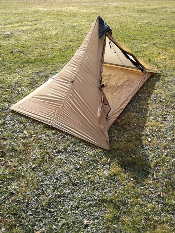 Bei dem Wetter muss man einfach raus und wieder Mal ein Zelt aufbauen ... und euch mein Locus Gear Khufu HB vorstellen. Ist mein 1-2 Personen UL Shelter für fast alle Fälle va. Bikepacking WE (ausser am Berg, da hat sich das große HMG Ultamid4 bewährt) .. va die Farbwahl ist m.A. sehr gelungen. Meine Beobachtungen: 1. Die Verarbeitung ist absolute Spitze. Japanische Präzision ... va an den geraden UND getapten!!! Nähten. Hab sowas sonst nur bei Cuben Zelten gesehen. 2. Das10D rip-stop Nylon Gewebe hat eine sogenannte Hybridbeschichtung aus Sil and PU. Regen hat das Zelt noch nicht gesehen. Und das Gewebe ist schon arg dünn. Werde berichten wie es sich hält ... 3. Die Farbe nennt sich "Tan" ist sowas wie gold-ocker-braun und ist va wunderbar, wenn die Sonne aufgeht und es so rot-braun im Zelt wird ... echt schön. Außerdem ganz gut stealthy ... 4. Beim Innenraum darf man in einem schmalen Mid keine Wunder erwarten. Das Innennetz hängt schon tief über dem Gesicht ... und man muss sich mögen ... liegt man doch auf 135 Innenzelt Breite schon recht eng ... 5. ... das gleicht das Zelt aber durch das unglaublich geringen Gewicht und Packmaß aus. Das sind schon Cuben Werte (Innenzelt 360g mit Sack, Außenzelt 390g mit Sack). Man spürt das Ding kaum im Rucksack und mit 390g als Aussenhülle auch ein perfektes MID Tarp... auch deswegen besorgt. 6. Durch die geringe Innenhöhe kann man das Aussenzelt mit beiden Trekkingstöcken mit einer Art Verlängerungskit (heißt DPTE) V-förmig OHNE Innenstange aufbauen (wird noch besorgt). Dann kann man sich dann im Zelt sicher besser bewegen. 7. Auch der wasserdichte Frontzipper ist vom Feinsten. Ist beid-läufig ... was einen Zustieg bei Wind und Regen leichter ermöglicht... man öffnet von oben nicht ganz nach unten, steigt dann so in die Öffnung hinein ... 8. ... und so bleibt das Zelt absolut stabil verankert. Nichts flattert herum. Die Zelttür kann so auch leichter wieder von innen geschlossen werden. Hat sich als echter Vorteil heraus gestellt. 9. Einen zweiten Eingang gibt es leider nicht ... was mit Innenstange zu zweit schon zu einer kleinen Kletter-Rauferei ausartet va wenn Mann oder Frau dringend muss ... Da wäre das auch angebotene Zelt namens Hapi mit Quereingang die bessere Wahl gewesen ... (aber dann hat man an der Breitseite keinen gescheiten Kochplatz bzw. Aussichtsplatz) 11 ... würde auf jeden Fall einen zweiten Zipper auf der Hinterseite bevorzugen... auch bei Mehrgewicht. 12. Zum Kochen ist es zwischen Aussen und Innenzelt sehr eng. Hab das auch aus Sicherheitsgründen nicht gemacht. Hat ja noch nicht geregnet beim Zelten .. war also kein Thema. 13. Kondensation war bis dato kein Thema. Durch genügend Abstand zwischen Innen und Aussenzelt sowie der Lufthutze war es immer trocken. Vielleicht auch hilft diese neuartige Beschichtung da ... Fazit Es ist schon ein kleiner Kompromiss .... Leichtigkeit mit Funktionseinschränkung. Aber als UL 2P Doppelwand Zelt mit 130cm Innenraumhöhe und der Option auf ein reines Mid-Tarp Setup (nur Aussenzelt) für 390g mit Sack finde ich es für unser Bikepacking sehr sehr gut. Grüße