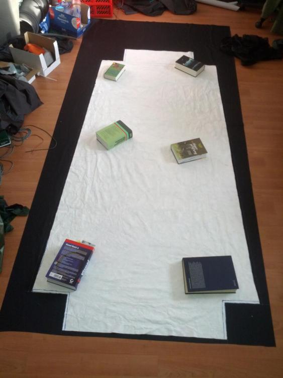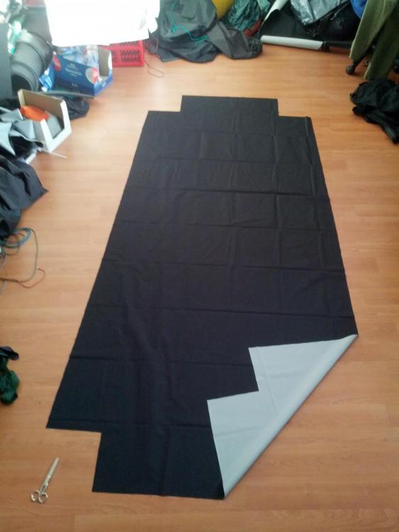 Heute Mittag ist meine Extexbestellung angekommen ... Material für Bivi und Tarp Solange es in meinem Suddereng hell genug war noch schnell den Oberstoff für das Bivi zugeschnitten. 3m von diesem Stoff auf den Boden, das Schnittmuster aus Tyvek drüber, angezeichnet und ausgeschnitten ... alles weitere die Tage ... Bin noch am überlegen ob ich für den Boden das 55g Silnylon nehme oder das 90g Zeltboden. Beide sind wasserdicht genug, es drückt nix durch, der Zeltboden ist aber schon deutlich robuster bzw. stichfester ... und ich bin ja eher der Typ "hinschmeissen, reinlegen, schlafen" ... wahrscheinlich wird es eher der Zeltboden. Oberstoff bekommt einen MittelRV so bis Bauchnabelbereich runter, oben ein rundes Loch. So kann der RV im Sommer offen bleiben und der Kopf liegt oben auf, im Winter RV zu und Atmung durch das Loch. Das Mückennetz geht runter bis zum Ende des RV, wird mit nem Tanka von innen hoch gespannt zum entspannten Schlafen und Rundumblick. Werde dann noch ein paar Bilder vom "Produktionsprozess" einstellen ...- 6 Antworten