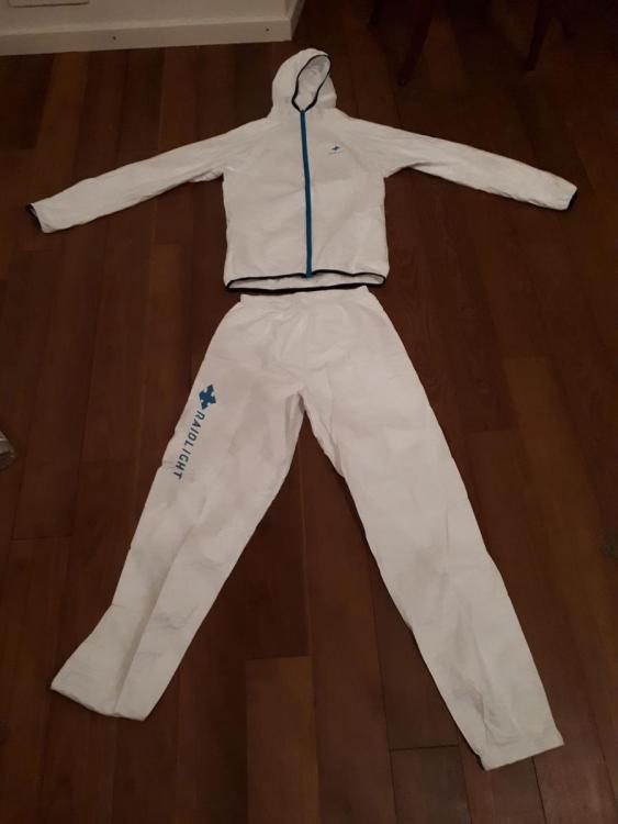 Hallo in die Runde, ich bin ja normalerweise nur sehr aktiver Leser. Heute möchte ich euch mal zwei Neuzugänge in meiner Ausrüstung vorstellen, da ich vor dem Kauf einfach nichts brauchbares darüber gefunden hatte. Vllt. interessiert es ja potentielle Nachkäufer. 1x Jacke Raidlight Tyvek Waterproof WR - 83gr selbstgewogen in Grösse S 1x Hose Raidlight Tyvek - 65gr selbstgewogen in Grösse S Ich bin zufällig über sie gestolpert und da sie jeweils unter 20€ Kosten war es mir den Versuch wert. Ich hatte bisher noch nie etwas aus Tyvek (bis auf Briefumschläge) und nur viel davon gelesen. Meine bisherigen Einsätze: Joggen und Berglauf für die Jacke, (schnelles) Wandern und stationäres rumsitzen in Camp, Zug oder sonstwo nach Radtouren mit der Hose. Fazit: Die Hose begeistert mich jedes Mal aufs neue. Fühlt sich federleicht an, klebt, zumindest an haarigen, Beinen nicht an. Wärmt für ihr Gewicht erstaunlich gut. Winddicht. Packmass finde ich für die Lesitung absolut in Ordnung (Auf dem Foto links). So Nylonzeug wäre vllt. noch kleiner, klebt aber am Bein (bei mir zumindest) Die Jacke kann alles was die Hose kann, aaaber: diese nutze ich ja gerne auch für Sport, bei dem ich viel schwitze. Eine Zeit lang geht das sehr gut, wehe aber wenn sich die Feuchtigkeit mal ins Tyvek vorgearbeitet hat...dann wirds klebrig und feucht. Das dauert bei mir ca. 1Std laufen, aber so lange trage ich sie meistens nicht am Stück. Ist also i.O. für lange Läufe packe ich aber trotzdem wieder meine Nylonwindjacke ein. Die ist zwar ca. 30gr schwerer, aber deutlich kleiner im Packmass und einen Tick atmungsaktiver. Optik: Wer beides in Kombi trägt, kann sich auf jedenfall auf den ein oder anderen Blick gefasst machen. Ich trage sie eh selten in Kombi und deshalb war das für mich kein Argument. Wie sind eure Erfahrungen mit Tyvekklamotten? Im Forum lese ich viel über alle möglichen Tyvek Einsatzbereiche aber zu Hosen zb. habe ich nichts gefunden. Uli