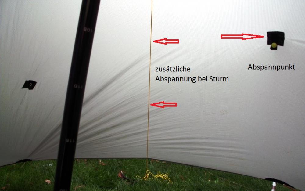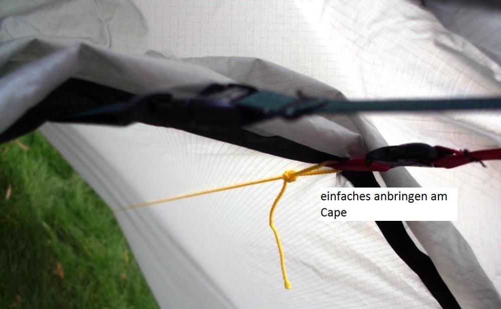 um die Windstabilität des Gatewood Capes zu erhöhen habe ich einen zusätzlichen Abspannpunkt am Gatewoodcape angebracht.