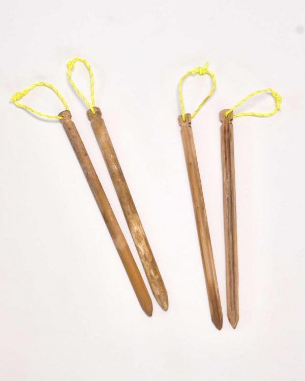 im ul-bereich begegnet mir bambus immer wieder. z.b. die essstäbchen als hering. als langfaseriges holz bietet es sich noch für viele andere verwendungen an. irgendwo habe ich gelesen, dass sogar ein rucksackgestell aus bambus in der mache ist. gestern habe ich auf die schnelle vier u-heringe aus einer alten bambusstange geschnitzt. (oben habe ich die stange direkt über dem knoten abgesägt.) das ergebnis hat mich selbst erstaunt. ein 20 cm hering, gut 1 cm breit wiegt mit zunsel 6 g. die 4 stück packe ich jetzt einfach immer mit ein, und werde schauen wie lange sie halten. vg. -wilbo-