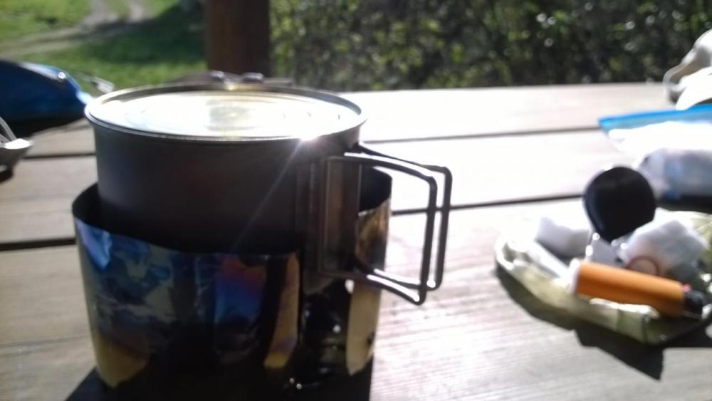 In den vergangenen Tagen habe ich mir mal Gedanken über das Thema "Solid-Fuel", oder auch Esbit-Kocher, Gedanken gemacht. Gründe dafür waren u.a., dass ich auf einem der letzten Treffen einen Esbit-Titan-Kocher bekommen habe, und ich nach einer Alternative zu Spiritus suchte. Eine Alternative zu Spiritus?! Wieso das denn? Ich will versuchen es zu erklären: Wenn ich "richtig kochen" will nehme ich einen Trangia, trotz des Gewichts - ich mag ihn irgendwie und komme super damit klar. Will ich hingegen nur Wasser erhitzen, ist mir der alte Schwede zu schwer. Dann kommen Systeme wie z.B. der SuperCat-Stove oder das Caldera-Cone Keg-F-System in Betracht. Ich habe durchaus ein paar Küchen in unterschiedlichen Ausprägungen hier herumliegen, aber keine ist perfekt. Der Hauptvorteil für mich ist beim Trangia, dass ich ihn löschen und anschl. mit dem verbliebenen Spiritus darin verschließen kann. Gleichzeitig ist dieser Vorteil ursächlich für seinen Hauptnachteil - das Gewicht. Alle anderen Spirituslösungen die ich besitze haben eine genau umgekehrte Charakteristik: Sie sind leicht, man kann sie aber nicht vernünftig löschen. Ergo muss die Spiritusmenge möglichst genau abgeschätzt und abgemessen werden. Natürlich geht es hier nur um wenige Gramm, aber mich stört es eben. Weiterhin finde ich die Handhabung von Spiritus nicht immer ideal. Soweit zur Vorgeschichte. Wie gesagt liegt hier seit ein paar Monaten ein Esbit-Titankocher rum. Irgendwie finde ich den witzig. Auch ein paar Reste Titanfolie hatte ich noch, ebenso etwas Silikon-Backpapier. Mir spukt schon seit längerem das LiteTrail Titanium Solid Fuel Cook System im Kopf herum. Allerdings sehe ich nicht ein das komplette Set neu zu kaufen, wenn ich alle wesentlichen Teile schon einzeln hier herumliegen habe. Im Wesentlichen fehlte ja nur der Topf. Vor kurzem fand ich bei McTrek eine Markill(?)-Edelstahl(!)-Tasse mit rund 500mm Inhalt. Vom Durchmesser her sollte sie perfekt auf den Esbit-Kocher passen. Bei einem Preis von 3,90€ konnte ich nicht nein sagen. Zu Hause habe ich die einzelnen Komponenten mal auf die Waage gestellt: Edelstahl Tasse: 91g Esbit-Kocher: 16g (im Mini ZipLock und mit ca. 1/3 Esbit-Würfel Rest darauf) Titan Windschutz: 2g Silikon-Topfdeckel: 10g (Boah ist der schwer!) In Summe also 119g. Nicht schlecht wie ich finde. Zugegeben, ein Keg-F in Minimalausstattung und ohne Caddy wiegt unter Hundert Gramm, aber: Das Keg-F-System hat keinen Griff. Ich kenne viele Möglichkeiten ohne Griff auszukommen, angefangen mit den Silikonbändern bis hin zu Socken, Buff oder irgendwelchen Drahtbügeln. All das hat mich nicht überzeugt. Die Edelstahltasse hat einen festen Griff der noch nicht einmal weggeklappt werden kann - das ist echt praktisch und klappert nicht. Der Silikon-Topfdeckel wird auch als Topflappen verwendet, damit verbrennt man sich nicht direkt die Finger am Griff. Es hat mich überrascht, wie leicht die Edelstahl-Tasse ist. Schließlich ist Edelstahl hier im Forum quasi „unbekannt“ weil zu schwer. Sicher, die Tasse wäre in einer Titanversion etwas leichter, dafür aber ca. 10x so teuer. In Alu wäre sie vielleicht auch leichter, dafür aber tendenziell weniger robust, mit einer HA-Beschichtung versehen, oder (ganz schlimm) aus blankem Alu. Edelstahl braucht keine Beschichtung, kostet wenig, wiegt nicht viel mehr und steht nicht im Verdacht Krankheiten auszulösen. (Appropos Krankheiten: Ich weiß das Esbit-Dämpfe auch kein laues Lüftchen sind, und ich mich mit meiner Lebensweise weitaus größeren Gesundheitsrisiken aussetze, dennoch wollte ich auf die immer wieder angeführten Nachteile von unbeschichtetem Alu hinweisen. Bitte keine OT-Diskussion zu diesem Thema.) Wie sieht es mit der Leistung aus? Mit einem 14g Esbit-Würfel kochen 500ml Wasser nach etwa 9 Minuten. Dabei werden etwa 2/3 des Würfels verbraucht. Den Rest des Würfels kann ich ausblasen. Mit dem verbliebenen Drittel erhitze ich anschl. eine Tasse Tee oder Kaffee soweit, dass man durchaus von einem „Heißgetränk“ sprechen kann. Vorteilhaft hierbei ist, dass ich nicht warten muss, bis das Getränk wieder auf Trinktemperatur abgekühlt ist. 14g Brennstoff reichen also für eine warme FBC-Mahlzeit und ein Heißgetränk. Das finde ich ideal. Die Topfgröße reicht auch aus um z.B. ein asiatisches Nudelgericht darin zuzubereiten. „Esbit stinkt aber und hinterlässt eine klebrige Schicht auf dem Topfboden!“ Stimmt, aber nach meiner Erfahrung hält sich die Geruchsbelästigung in Grenzen. Den Rauch eines Holzkochers empfinde ich persönlich als weitaus störender. Was den Belag am Topfboden angeht, so lässt sich dieser, dank des robusten Edelstahls, problemlos entfernen: Einfach die leere Tasse mit einer Drehbewegung auf Sand oder Erde reinigen, kleinere Reste auf Gras. Die daraus resultierenden Kratzer am Boden stören nicht und schränken die Funktion in keinster Weise ein. Zu den weit verbreiteten Spiritusküchen kann Esbit eine Alternative sein. Man kann Esbit-Reste ausblasen und beim nächsten Mal weiter verwenden, eine ähnliche Funktionalität wie beim Trangia also. Nachteilig finde ich im Vergleich zu Spiritus nur den Preis der Esbitwürfel und die schlechtere Verfügbarkeit unterwegs. Die Vorteile nochmal kurz zusammengefasst: Das Set ist KompaktGünstigRobustLeichtEinfach in der AnwendungIdeal für FBC Warum schreibe ich das hier alles? In der jüngeren Vergangenheit sind hier im Forum immer wieder Ein-/Umsteiger aufgetaucht, die ein Thema mit dem Invest in Komplettsets wie z.B. von Litetrail oder Traildesigns haben. Eine (S)UL-Küche muss nicht immer nur aus teurem Titan bestehen. Windschutz und Deckel können günstig aus etwas Alufolie hergestellt werden. Mit dem hier beschrieben Set möchte ich eine preisgünstige Alternative aufzeigen. Auch für die Fraktion der Jakobspilger kann das Set interessant sein um sich unterwegs mal eine Kleinigkeit (z.B. Fertigsüppchen o.ä.) zu kochen. Für Pilger lohnt eine große 