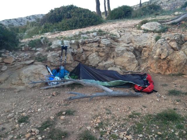Vorwort Hallo Leute, ich bin ja jetzt ebenfalls auf dem GR221 unterwegs gewesen, relativ spontan, hatte 8 Nächte dafür eingeplant, diese anhand der günstigsten Flüge gebucht, das Gepäck war schnell beisammen (nur ein paar "Experimente" diesmal) und mich nicht groß auf die Wegfindung mittels Führer o.ä. vorbereitet, lediglich ein Paar Tourenberichte gelesen und zur Navigation Vectorkarten von Mallorca mit dem Track von Alpenquerung.info + Map.Solutions Karten 1:33.000 als Backup besorgt. Schon konnte es losgehen. Vielen Dank nochmals insb. an @Lahmeente aber auch @Dr.Matchbox @derray @mrhardstone für die Reiseberichte hier im Forum. Meine Packliste gibt es hier, mit ein paar Änderungen: Prolite 3 -> dünne Eva 190*50cm + Gossamer Gear Nightlight getauscht MLD Bugbivy -> Polycryo Groundsheet Es wurde ein Silnylon Drybag hinzugefügt (Handgepäck für den Flieger & Kleidersack) Da ich solo unterwegs war, mittel fit (zuvor Monate nur rumgesessen wegen Examensvorbereitung) und normalerweise lange Etappentage mache, hätte ich nicht so viel Zeit für den Trail gebraucht. Aber da ich überall die eindrückliche Warnung las, den Trail nicht zu unterschätzen habe ich darauf gehört und die vorsichtige "Zielvorstellung" von 7 Tagen Wandern + 1 Tag Strand / Backup eingeplant. Ich wäre im Nachhinein auch mit erheblich weniger ausgekommen, aber dazu später mehr. Start: Mein Abenteuer begann schon am Vortag, ging mein Flug doch um 5:45 am Morgen, so bin ich also schon am Abend zuvor mit der Bahn zum Flughafen gefahren und konnte dort direkt meine neue Isomatte (Gossamer Gear Nightlight Torsosize) ausprobieren, habe es mir nämlich hinter den Check-In Schaltern bequem gemacht und 3-4h geschlafen. Hat keinen gestört. Beim Aufwachen wurde ich aber halb entsetzt halb interessiert Zeuge eines medizinsch-neurologischen Phänomens, dass man im Studium schon früh lernt, aber ich noch nie gesehen hatte: Auf der Seite, auf der ich geschlafen hatte, hatte ich eine Radialislähmung mit Fallhand entwickelt... habe wohl ungünstig gelegen. Zum Glück verschwand der Spuk so schnell wie er gekommen war. Schnell noch den Rucksack in die Isomatte und den Rest einer Rolle Frischhaltefolie gewickelt, aufgegeben und los gings. Nach einem ereignislosen Flug mit Landung um ca. 8 Uhr konnte ich inklusive Einkauf von etwas Proviant (Salami, Manchego Hartkäse, Obst, Wasser) und Busfahrten schon um 10 Uhr in Port d'Andratx mit dem Wandern beginnen. Nachdem ich den Yachhafen passiert hatte verlief ich mich bereits das erste Mal, worauf mich ein älterer deutscher Wanderer (voll in Khaki) mit Rother Wanderführer hinwies und erstmal ausführlich darüber schimpfte, dass es auf Mallorca nur so schlechte Schilder gäbe. Es fehle dort einfach an einem Deutschen Alpen- oder Sauerländischen Gebirgsverein! Ich lief einige Minuten mit dem Herren die Straßen-Serpentinen hoch, während dieser die minutiöse Wegbeschreibung aus dem Wanderführer rezitierte (nach 286m an einem großen Baum halb rechts abbiegen und der Straße bis zur übernächsten großen Kurve folgen... so in etwa klingt es jedenfalls in meiner Erinnerung), verabschiedete ich mich von dem Herren der mich noch vor den Gefahren des alleinigen Wanderns im Gebirge warnte und kürzte die Straßenserpentinen über ausgelatschte Wege quer den Hang hinauf ab. Dort Begann auch das "Navigations-Elend" von dem ich für die ersten Etappen bereits gelesen hatte, es gab nämlich Trampelpfade und auf diese weisende Steinmännchen in so ziemlich alle Richtungen, sodass ich mich irgendwann nicht mehr darum kümmerte und einfach grob in Richtung "oben" lief. Als ich schließlich am ersten Pass ankam und mit einer tollen Aussicht auf das tiefblaue Mittelmeer belohnt wurde, konnte ich aber irgendwann keinen Weg mehr finden und ließ mich vom Handy-GPS zum "Weg" bzw. nächsten Steinmännchen lotsen, ab jetzt ging es nämlich abwechselnd über einen Wanderpfad und ein verwinkeltes Kalksteinfeld. Da rüberhüpfen machte direkt richtig Spaß Irgendwann traf ich wieder auf einen breiteren Weg (vermutlich hätte man diesem von Anfang an Folgen können, wenn man auf der Straße geblieben wäre), die einen jedoch irgendwann zu einer Sackgasse an einem kleinen "Gipfel" führt. Von dort hatte man zwar einen Tollen Ausblick auf St. Elm und Sa Dragonera, einen weiteren Weg schien es jedoch nicht zu Geben. Und auch das Navi sagte, der Weg wäre einfach nur nach Rechts, dumm nur dass dort überall eine Steile Abbruchkante verlief. Nach einigem Suchen fand ich schließlich den Durchlass durch die Felsen, machte eine Spitzkehre und lief daraufhin direkt unterhalb der Abbruchkante entlang (und stieß prompt auf eine große Rentner-Wandergruppe die dort großes Picknick machte) Der weitere Weg verlief leicht zu finden durch Kiefernwald, immer wieder mit schönen Ausblicken aufs Meer. Als ich irgendwann schließlich an einer Bucht mit Häusern ankam, dachte ich schon am Zwischenziel St. Elm zu sein und genehmigte mir ersteinmal ein Bad im Meer, das Wasser war zwar noch kalt aber für mich in dem Moment genau richtig. Erst dann stellte ich fest dass es nach St. Elm noch ein Paar Kilometer Straße waren. Dort angekommen gönnte ich mir erstmal ein Bocadilla con Jamon (Danke @Lahmeente für den Tipp) und ein Alkoholfreies Bier, eine kleine Mittagspause. Aber der Tag war noch Jung, also brach ich aus St. Elm auf um nach la Trappa zu laufen, dort wollte ich ggf. übernachten. Der Weg dorthin war wieder recht schwer zu finden, nachdem man eine Weile durch Wald aufgestiegen war musste man zunächst leicht kraxeln, um zu einer ausgewiesenen Kletterstelle (mit Seil gesichert) zu kommen, hat mir zum Glück nur leichte Höhenangst bereitet. Als die Kletterpassage überwunden war, kommt man auf einen Bergpfad der dicht am Abgrund verläuft und sieht wieder das Meer direkt unter einem, traumhafte Aussicht! Dort traf ich auch noch etliche weitere Menschen, die ebenfalls nach La Trappa unterwegs waren, alle