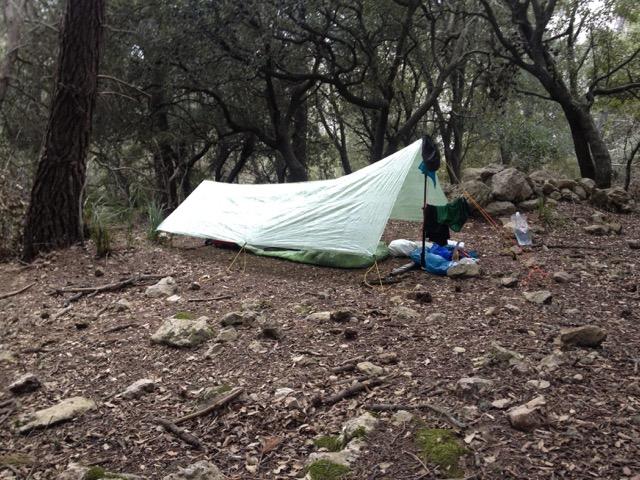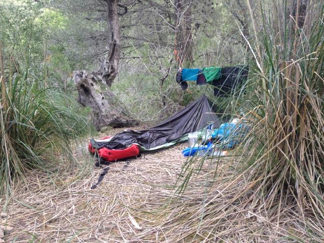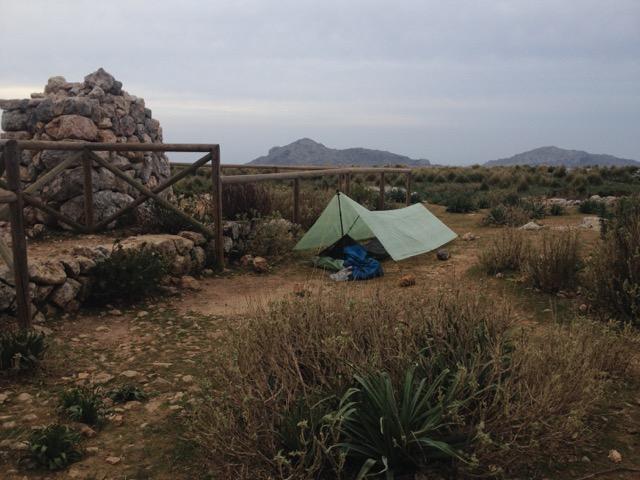 21. April 2015 12:10 Uhr — Aufbruch in Port d'Andratx 17:00 Uhr — Feierabend in La Trapa Dank der Informationen aus dem Forum am Hafen erst einmal ordentlich die Wasservorräte aufgefüllt und dann los. In St. Elm habe ich dann erst einmal Wasser nachgekauft und bei einem Eis den Blick aufs Meer genossen. Auf den Weg rauf zu La Trapa hat mich dann der frühe Abflug um 06:00 Uhr morgens eingeholt und als ich oben angekommen bin war weitergehen keine Option mehr. Ausserdem hätte ich mir auch keinen schöneren Lagerplatz vorstellen können. Nachdem ich den traumhafter Sonnenuntergang genossen habe, habe ich mich dann am Dreschplatz in meinen Biwaksack gekuschelt und war sofort weg. 22. April 2015 09:10 Uhr — Aufbruch in La Trapa 20:30 Uhr — Feierabend zwischen Banyalbufar und Esporles Nach einem ordentlichen Frühstück mit Porridge und Kaffee ging Tag 2 los. Das Wetter war leider im Vergleich zum Vortag nicht so gut und hat sich im Laufe des Tages auch noch weiter verschlechtert. Ein Ergebnis der durchwachsneren Wetterlage war, dass ich meine Sonnenbrille an meinem Hüftgurt befestigt hatte, die ich daraufhin dann auch prompt verloren habe. Aber nichts desto Trotz war es trotz des grauen Himmels und des starken Windes bis Estellences ein wunderschöner Weg. In Estellences dann erst einmal eine gemütliche Pause eingelegt und meinem ersten Café con Leche mit einem Schinken-Sandwich genossen. Nach der Pause hat sich dann auch das Wetter wieder verbessert und der Weg rauf zur Finca PlanÃcia war wieder ordentlich schweisstreibend. Das Gr-221 Schild bei Banyalbufar, auf das man nach der Umgehung der Wegsperrung stösst, war einfach zu groß um sich danach zu richten, deswegen bin ich erst einmal 30 Minuten auf dem Fahrweg in die falsche Richtung gelaufen, bis mir klar wurde das da irgendwas nicht stimmen kann. So richtig guter Laune dann fast schon im leichten Trab wieder zurück zum Schild und weiter auf dem richtigen Weg. Zum Glück habe ich dann im Wald recht schnell einen schönen Lagerplatz neben einer Köhlerstelle gefunden und mein Tarp dort dann im dunklen aufgebaut. Nach einem Müsliriegel bin ich dann auch sofort in meinen Quilt gekrochen. 23. April 2015 08:00 Uhr — Aufbruch zwischen Banyalbufar und Esporles 18:30 Uhr — Feierabend im verwilderten Olivenhain kurz vor Deia Nach dem Aufstehen habe ich alles schnell zusammen gepackt da ich in Esporles frühstücken wollte, was ich dann auch bei wieder herrlichstem Wetter auf dem Marktplatz gemacht habe. Danach im Supermarkt noch die Wasservorräte aufgefüllt und es ging wieder los. Der Weg nach Valdemossa hat mir richtig gut gefallen. Kurz vor Valdemossa habe ich mich dann erst einmal auf einen Felsen gehockt und eine kurze Pause eingelegt, bei der ich den Blick auf Valdemossa genossen habe. Der Blick auf Valdemossa hat mir dann auch wesentlich besser gefallen als der Valdemossa selber. Bis dato fand ich eigentlich alle Orte sehr gemütlich und gar nicht so überlaufen, das hat sich in Valdemossa dann geändert. Nach einer kurzen Verschnaufpause in einem Eiskaffee habe ich dann schnell die Vorräte wieder aufgefüllt und geguckt das ich Land gewinne. Als es dann wieder auf den Wanderweg ging wurde ich erst einmal an einem Informationshäuschen darüber aufgeklärt, dass auf dem Stück zwischen Valdemossa und Deià renaturiert wird und gebeten doch eine Alternativroute zu gehen. Das habe ich dann auch gemacht. Ich weiss nicht wie der andere Weg gewesen wäre, aber die Alternativroute war wunderschön und es ging hoch hinaus. Auf dem Weg nach oben gab es dann auch mehr als eine schöne Aussicht zu geniessen, aber keine war so atemberaubend wie die, als man ganz schlussendlich ganz oben angekommen ist. Der Weg runter zurück auf den GR-221 war dann auch spannend, wobei am spannendsten der Hinweis ganz am Anfang war, wo man nach Deià abzweigen musste. Bei dem Hinweis handelte es sich um eine Serviette, auf der Deià mit einem Pfeil stand und das ganze dann mit einem Stein beschwert neben dem Pfad gelegt wurde. Zum Glück hat es nicht geregnet! Wieder zurück auf dem GR-221 habe ich dann auch direkt angefangen mir einen Platz für die Nacht zu suchen und bin dann in einem alten, verwilderten Olivenhain kurz vor Deià fündig geworden. 24. April 2015 08:00 Uhr — Aufbruch im verwilderten Olivenhain kurz vor Deià 19:00 Uhr — Feierabend kurz vorm Cúber Stausee im Wald Am Morgen wieder alles schnell zusammen gepackt und los Richtung Deià . In dem kleinen Laden, den ich dort gefunden habe, die Vorräte wieder aufgefüllt und direkt weiter. Ich habe noch kurz überlegt, ob ich den Küstenweg gehen soll, mich aber dagegen entschieden, nachdem ich Finca, frischer Orangensaft und Mandelkuchen in der Beschreibung meiner Wanderkarte gelesen habe. Das war ein Fehler! Der Weg von Deià nach Soller ist alles andere als spannend und zusätzlich auch noch das überlaufenste Teilstück der Tour gewesen. Ganze Heerscharen an Tagestourgehern sind mir entgegen gekommen und Mountainbiker waren auch noch dabei. Auf halbem Weg, an einem schönen Fleckchen, wie ich dann später festgestellt habe wenige Minuten von der Finca mit dem Mandelkuchen entfernt, habe ich dann erst einmal eine ausgedehnte Pause gemacht und mir einen Kaffee und Porridge gekocht. Frisch gestärkt ging es dann wieder los und da ich gerade eine ausgedehnte Pause hinter mir hatte, habe ich den Mandelkuchen un den Orangensaft links liegen gelassen. Auf den Weg runter Richtung Soller, kurz hinter der Abzweigung bei der es zum Refugi Muleta hoch geht, habe ich dann aber an einem Stand am Wegesrand zumindest meinen frisch gepressten Orangensaft bekommen. Der war lecker! Soller hat mich ungefähr genau so begeistert wie der bisherige Weg und ich habe nur schnell Wasser nachgekauft und mich wieder verdrückt. Ich habe dann in Biniaraix am Waschhaus wieder eine ausgedehnte Pause gemacht, mich des Wassers erfreut und das erste mal auf der Tour meinen Waschlappen zum Einsatz gebracht