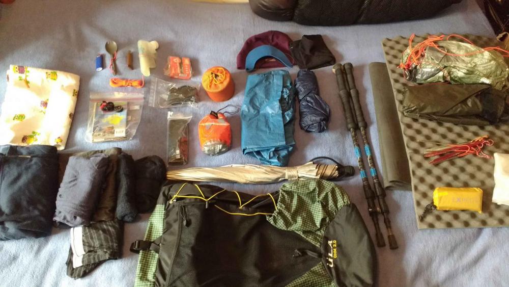 Hallo Leichtwanderer, ich habe ne Weile überlegt, ob ich meine Packliste euren kritischen Augen präsentieren sollte, aber da ich mir sicher bin, noch leichter werden zu können und das mein größter Wunsch ist, da ich bei den letzten Wanderungen immer wieder mit starken Fußschmerzen zu kämpfen hatte (die zwar nicht direkt von dem Rucksackgewicht herrühren, aber durch dieses nicht gerade positiv beeinflusst werden), will ich es mal wagen. Also ich werde - wie einige andere hier aus dem Forum auch - demnächst den GR221 laufen, und zwar ab dem 02.04 über Ostern. Ich rechne mit Temperaturen zwischen 10 und 20 ° Celsius tagsüber und mindestens 5°C nachts. Außerdem gehe ich davon aus, dass es in dieser Woche nicht regnen wird - momentan scheint es dort regelmäßig zu regnen, so dass in zwei Wochen ja eigentlich mal wieder ne Trockenperiode angesagt wäre Ich habe neun Tage Zeit und werde diese auch auskosten - meine Füße lassen einfach keine 30km-Tage zu Nun gut, genug eingeleitet, hier meine Packliste: Rucksack (620 Gramm) GossamerGear G4 Größe M GossamerGear Hüftgurt Größe M leer 67 GossamerGear Stützkissen 42 Liner 120l-Müllsack (blau) 32 Gürteltasche meru Tramp 102 Schlafen (1945 Gramm) MYOG-Quilt (aus 133 Apex, in der Mitte doppelt gelegt) 689 Groundsheet Malerfolie stark 1x2,5m 54 MSR Groundhog Stake-bulk Alu-Heringe Y-Form, 8 Stück 96 Tüte für Abspannschnüre 5 Isomatte hellblau 113 Kopfkissen Exped Air Pillow UL M 45 Kopfkissen Exped Air Pillow - Packsack 4 Isomatte Therm-a-rest Prolite short 339 Tarp Ranger II - mit Abspannschnüren und Tankas 574 mit zusätzlich aufgenähten Abspannpunkten, deswegen etwas schwerer Packsack Tarp Ranger II 26 Bekleidung (1933 Gramm) Daunenjacke ultra light down (UniClo) 195 MYOG-Windshirt 77 Basecap Nike Sportkappe 49 Laufsocken 23 airism Shirt kurzärmlig (UniClo) 75 Trekkinghose meru cartagena pants 160 Poncho - transparent, "Einweg" 40 Inov-8 Roclite 286 GTX Größe 40,5 583 UniClo longsleeve heattech extra warm Rollkragen 181 UniClo lange Hose heattech extra warm 135 Trekkingbluse kurzärmlig (Odlo) 87 MYOG Huaraches blau 78 2 Unterhosen 38 Hose kurz Scott AMT womens 84 Sturmhaube 30 Damensöckchen Nylon 4 Schlafsocken schwarz 56 rotes Buff 38 Küche (499 Gramm) Trinkblase Platypus Hoser 2 Liter mit Schlauch 122 MYOG Hobo mit intregr. Topfständer 132 MYOG Cat Stove mit Plastetüte 6 nur als Backup zum Hobo mit 75ml Spiritus Windschutz Alublech 0,1mm 11 Plastelöffel blau 7 Konservendosentopf 800ml Eisen 76 Topfdeckel Alublech mit Korkgriff 3 Falttasse blau 23 Streichhölzer 6 Abschwaschlappen 9 Spiritusknautschflasche pfelino 100g 7 Trinkflasche source 1 Liter 30 Wasserfilter Sawyer mini 40 Faltflasche für Sawyer mini 0,5 Liter 22 Schlauchstück für Sawyer mini 5 Sonstiges (626 Gramm) Taschenmesser Opinel 27 Trekkingstöcke Fizan Compact 326 Isoband 17 Ausweis, Kreditkarte, Portomonaise mit Geld 40 (geschätzt) Wanderkarte Mallorca GR221 map.solutions 35 Notizbuch 171 Kugelschreiber 2 Stück 10 Technik (781 Gramm) Stirnlampe Petzl e+Lite 27 dig. Thermometer min-max 33 Iphone 4 139 Solarpowerbank mit Kabel 73 Ladekabel iPhone 60 Sony Cybershot DSC-WX200 in Silikonhülle mit 1 Akku 146 Ersatzakku Fotoapparat in Plastehülle 17 kindl ebook reader 213 MYOG kindl Hülle 11 Armbanduhr 45 Körperpflege 301 Gramm Verbrauch noch unbekannt Da ich ja davon ausgehe, dass es nicht regnen wird habe ich als echten Regenschutz nur einen "Einweg"-Poncho mit. Für leichten Nieselregen sollte das Windshirt, welches aus 30g/m² Ripstop-Nylon (kalandriert und winddicht) ist, ausreichen - oder?!?! Außerdem habe ich ja zum Schlafen die lange Unterwäsche mit, so dass ich selbst, wenn meine Klamotten nass werden, einigermaßen trocken die Nacht verbringen können sollte... Mein Programm zeigt mir also ein Basisgewicht von 5203 Gramm an - was ja schon gar nicht soo schlecht ist - vielleicht habt ihr noch Ideen, was ich optimieren könnte - wobei ich euch bitten möchte, nicht vorzuschlagen, dass ich den kindl weglasse Ach ja...dieses min-Max-Thermometer habe ich tatsächlich nur mit, um mal festzustellen, wie kalt es nachts wird - damit will ich den Einsatzbereich meines Quilts feststellen. Ich hoffe ja, dass er ausreichend ist (mit entsprechender Bekleidung natürlich), sicher bin ich mir aber nicht. Aber auf jeden Fall will ich die Temperaturbereiche festhalten, die er dort mitmacht... Ansonsten bin ich auch für alle anderen Hinweise und Anmerkungen zur Packliste dankbar, sobald ich den Proviant eingetütet und abgewogen habe, ergänze ich die Angaben noch. Grüße Katrin