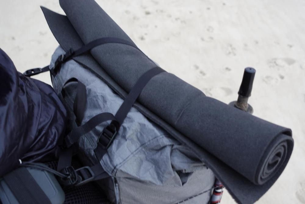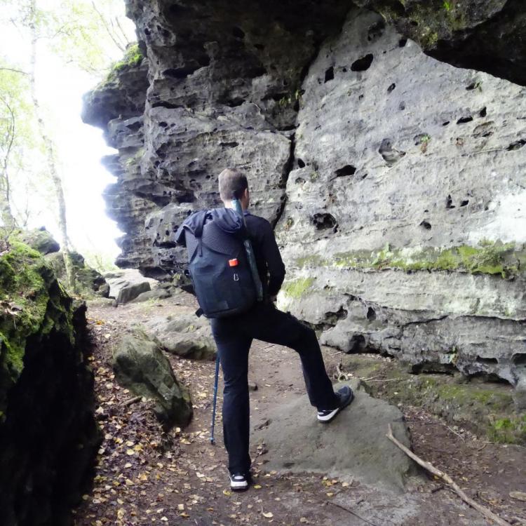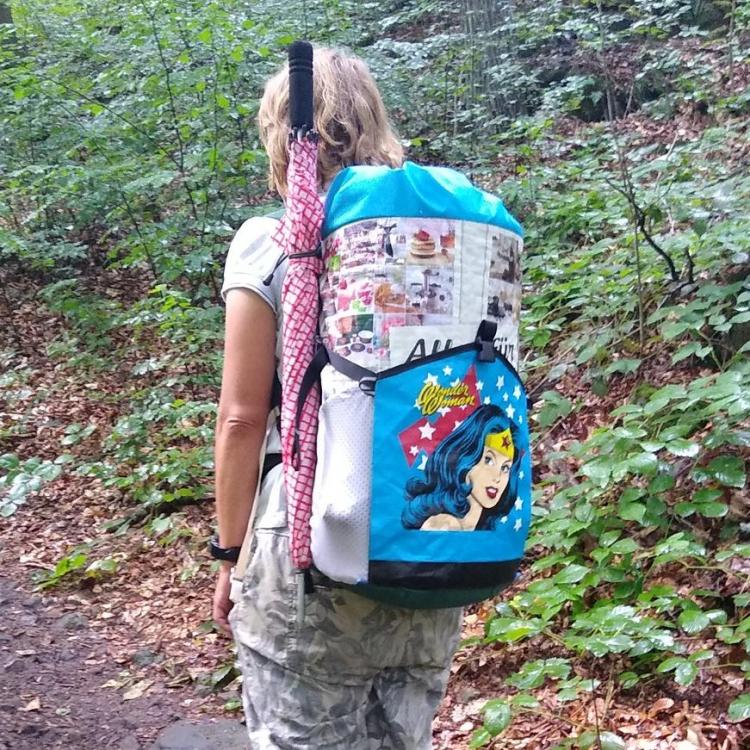 ... wie es nun damit weiterging, erfahrt ihr hier: In meiner Rucksackkollektion klaffte bis vor kurzem noch eine schmerzhafte Lücke: ein Rucksack für kürzere Touren in der warmen Jahreszeit, mit vereinfachter Konstruktion und einem verringertem Volumen im Vergleich zu meinen bisherigen Rucksäcken. Der Prototyp hatte sich außerordentlich gut bewährt und bekam sein zweites Leben als “Resterucksack” aus aufgesammelten Materialien für eine Wanderfreundin. Zusammen mit den Erfahrungen aus dem letzten Rucksack und einer Reifezeit von ca. 2 Jahren entstand ein Design mit den folgenden Merkmalen: Volumen ca. 30 l (ohne "Erweiterung" durch Rollverschluß, ohne Außentaschen) Gewicht 340 g ohne Noppenschaum (als Rückenpolster), Gesamt dann 384 g Quaderförmige Grundform mit stark abegrundeten Ecken an der Vorderseite Gerade, klare Linien - dadurch optimal für die Burrito-Methode weitgehend gerade Schulterträger, welche dadurch in sich schlanker ausgeführt werden konnten rundum großzügige, aber flache Netztaschen aus stabilem Material Trinkblasenfach und Schlauchdurchlass Trinkschlauchschlaufen rechts beidseitig MOTASY-Schnittstelle (Band in definierten Dimensionen für zusätzliche Täschchen usw.) nahtarme Konstruktion gedoppelter Boden (zusätzlicher Nässeschutz beim Absetzen des Rucksacks) Rollverschluß mit stabiler einseitiger Versteifung zusätzliches flaches Rückenfach für passend zusammengefaltete Leichtluftmatratze (dient da als Rückenpolster) Befestigung für Noppenschaum als Rückenpolster ausreichend Schlaufen zur Befestigung für Regenschirm und Wanderstöcke Einsatzzweck und Packsystem Der Rucksack ist für Touren kürzerer Dauer im Mittelgebirge während der warmen Jahreszeit konzipiert. Bis zu zwei Liter Wasser, kurz vor dem Drycamp auch 4 Liter werden mit Essen und Brennstoff für ein bis drei Tage transportiert. Als Referenzstrecke dient mir der Forststeig im Elbsandsteingebirge. Überwiegend anspruchsvolle, naturbelassene Pfade durch felsiges Terrain, durchsetzt mit Wurzeln und garniert mit Holzstämmen aus Windbruch führen nicht nur durch lichte Wälder, sondern auch durch enge Felsgassen, Gestrüpp und Dornenranken. Tagesetappen bis 40 km sind angedacht, so dass ein sowohl leichter, als auch stabiler und komfortabel sitzender Rucksack benötigt wird. Das schlanke Profil ist für die engen Felsgassen und Schlüchten unverzichtbar. Mein erster Hauptsatz der Packdynamik lautet: Das Zeug gehört komplett IN den Rucksack! Der Wettbewerb um minimalste Innenvolumengrößen führt dann zu unförmig ausgebeulten Netztaschen, wo der Inhalt ungeschützt hineingeworfen wird und an der nächsten Felskante in schmalen Felsgassen Beschädigungen nicht ausbleiben werden. Demzufolge findet sich in den flachen, aber großzügigen Taschen Platz für schlanke, flexible Dinge wie den 1.-Hilfe-Pack, wasserfest verpackte Wanderkarten, die Bodenplane und je nach den Umständen die Windjacke oder nasse Regenjacke. Flaschen passen praktisch nicht hinein, Softbottles könnten gehen. Gut komprimierter Müll landet ebenso außen am Pack. Durch die dünnere Sommer-Isomatte wird das Volumen nur wenig reduziert (Burrito-Methode), die 47 cm breite Isomatte passt perfekt in den Korpus. Aufgrund schlechter Erfahrungen mit der Zuverlässigkeit von Luftmatrazen kommt deren Einsatz nur im Sommer und nur zusätzlich zu einer Isomatte in Frage. Deshalb bleibe ich ganz oldscool bei der eingerollten Isomatte. Die Träger sind mit ca. 60 mm Breite und 5 mm Polsterung aus Evazote ausreichend komfortabel. Die gerade Linienführung benötigt keine stärkere Ausführung, die Ripsbandeinfassung überträgt die Kräfte optimal vom oberen Befestigungsband zu den mit Cordura innen einlagig verstärkten Lastwinkeln am unteren Ende des Rucksacks. Meine hauseigene Taschenschnitstelle “MOTASY” (Modulares Taschen-System), quasi ein radikal reduziertes MOLLLE-Derrivat, geht von einem gedachten 40 mm Quadrat als Schnittfläche zweier Bänder aus. Hier als 38 mm Polyester Band mit PenCott® Print ausgeführt. Vorhandene und selbst gefertigte Täschchen, Messerscheiden, Klappmesser mit passendem Clip oder über Tek-Lok Small der ganze Bereich der Kydex-Scheiden bieten genügend Möglichkeiten, seine Ausrüstung griffbereit zu organisieren. Weitere Taschen (oder Schnittstellen dafür) sind nicht vorgesehen, weil eine passende Hüfttasche zum Transport von Geldbeutel, Schlüssel, Taschentüchern, Feuerzeug, Zeckenzange, Stirnlampe und dergleichen mehr dient. Die bei mir obligatorische Trinkblase hängt in einem separatem Fach über der Isomatte im Hauptfach, der Schlauch wird sicher am Träger geführt und es passt sogar das Mundstück durch den Durchlass, was das Auffüllen erheblich erleichtert. Der Rolltopverschluß lässt sich dank der starken Versteifung und eines Cam-Snap Druckknopfes faltenfrei zusammenrollen und wird durch ein 15 mm Band mit Steckschließe zusätzlich gesichert. Die Kraftübertagung erfolgt an der hinteren Netztasche über im Saum eingelegte 20 mm Ripsbänder, welche mit Riegel / Bartack am Korpus an einer Verstärkung enden. Hier werde ich bei einem weiteren Exemplar doch Teilungsnähte vorsehen, es ist einfacher zu fertigen und die Kräfte werden auch sauberer eingeleitet. So jedenfalls werden die Netzfächer durch eine Daisy Chain aus 5 mm Paracord-Hülle getrennt, zusammen mit weiteren unauffälligen Paracordschlaufen ergeben sich zahllose Befestigungsmöglichkeiten für Regenschirm, Wanderstöcke, Reflektorband (Pflicht in CZ nachts auf Landstraßen!) und was einem so einfallen mag. Mangels Teilungsnähte wurden auch das Ripsband stumpf an das elastische Band der Seitentaschen angesteppt (Zick-Zack-Stich), ob das sonderlich schlau war, wird sich erst noch bei längerer Nutzung zeigen. Ziel dieses Verfahrens war die Minimierung von Nähten im Bereicht des Rollverschlusses im oberen Teil des Packs, wo dieser stark durch Regen beaufschlagt wird und dort erfahrungsgemäß zuerst die Nä