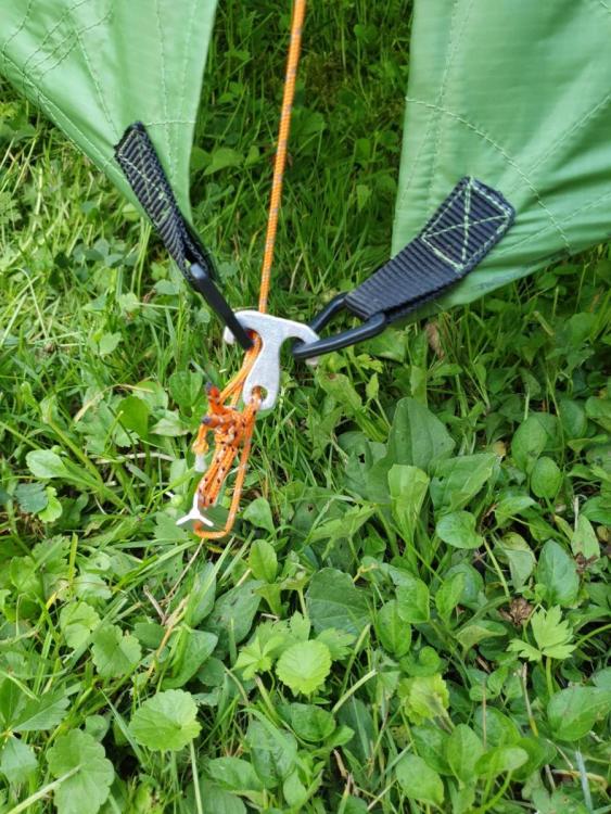 Ein weiteres Projekt, das schon seit mehreren Jahren im Hinterkopf steckt ist endlich erledigt! Seit 2015 hatte ich für alle Touren mit zwei Personen mein gutes, altes Silpoly Tarp (hier kurz vorgestellt). Auch wenn es von Anfang an kleinere Verbesserungen vertragen hätte, blieb es mein einziges Shelter für zwei, da einfach nicht der ernsthafte Bedarf bestand. Seid ich aber mit Freundin mehr und längere Touren plane, wurde es endlich Zeit für das lang ersehnte Update. Welche Probleme hatte das alte Shelter, die es zu beheben galt? Silpoly dehnt sich zwar nicht bei Nässe, aber ist sehr flexibel. Bei Wind werden die Seiten schnell sehr stark eingedrückt, der Platz ist dann sehr schnell begrenzt Auch mit Schirmen vorne dran ist bei heftigem Regen keine ordentlicher Schutz gewährleistet, da Beaks im alten Design fehlten mit 320g war das alte Teil nicht schlecht, aber ich hatte durchaus die Hoffnung nochmal 100+g einsparen zu können das Silpoly ist (wie alle beschichteten Stoffe) nicht 100% dicht und es bildet sich durchaus mal Kondens an der Innenseite, in Kombination mit dem flexiblen Material wurde das schnell ungemütlich Die Lösung: das Shelter aus Cuben neu bauen und Beaks anbringen Nichts dehnt sich mehr, es gibt's weniger Kondens und mit den Beaks mehr geschützten Raum. Das Tarp besteht aus vier Teilen, zwei für die Hauptflächen (mit hinterem Beak) und zwei weitere Teile für den Vorderen Beak. Gerne hätte ich die Teile auch aus einem Stück gemacht, aber das hätte mich einen guten Meter mehr Cuben gekostet und zudem wäre die Überlappung am Eingang nicht möglich gewesen. Alle Nähte haben einen 2% Catenary Cut (also 2cm Tiefe pro Meter Naht). Hierfür habe ich mir eine kleine Kette aus dem Baumarkt besorgt, die Teile mit Malerkrepp an die Wand geklebt und die Kette nach belieben gespannt und anschließend abgepaust - das ging erstaunlich gut und ist deutlich weniger Arbeit als den Cat-Cut zu berechnen und von Hand zu plotten. Als Material habe ich das übliche 19g/m² Cuben in Oliv genommen, 7lfm waren dafür notwendig Maße: die Seiten sind am Boden ca 2,6m lang, die Firstlinie etwa 2,8m vorne hat das Tarp eine Spannweite von 2,8m, hinten 2m Der Beak hinten ist ~50cm hoch und 1,8m breit, was auch der maximalen Breite entspricht der Vordere Beak ist geteilt und 70cm lang, die Breite damit variabler und von der Höhe abhängig, maximale Breite sind ca 2,3m (geschätzt) Es empfiehlt sich sehr den Saum vor dem nähen ordentlich zu falten und zu fixieren, dann näht es sich deutlich leichter und schneller. Statt Nadeln habe ich mal diese Papierclips genutzt. So sieht das gute Stück aus. hier das Hinterteil tiefer, vorn etwas höher gespannt (für mich die Go-To Variante), Referenz: das Groundsheet ist 1,45m breit Oben die Variante hoch abgespannt - für gute rundum-Sicht und viel Platz. Beide Beak-Hälften lassen sich separat öffnen. Da sich die Beaks beim Abspannen immer etwas aufziehen, habe ich einen kleinen Haken angebracht um bei schlechtem Wetter ordentlich dicht machen zu können. Bei ganz miesem Wetter kann man noch gut alle Seiten bis zum Boden ziehen. Da wird's natürlich etwas kuscheliger, aber es bleibt geräumig genug für zwei. So weit unten bildet der Beak sogar eine kleine Apsis. Kaum aufgebaut kommt auch schon der erste Regen - das Tarp hält wunderbar dicht Leider ist das Tarp erstmal nass, ein Gewicht werde ich nachreichen, sobald es wieder trocken ist. Ich denke unter 250g sollte es haben. Ich freue mich auf die erste Tour damit und werde weiter berichten, wie es sich schlägt! liebe Grüße Micha