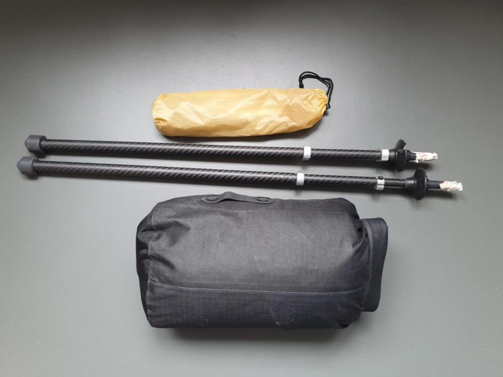 Schon lange hatte ich das Hexamid Pocket Tarp w/ doors ins Auge gefasst, weil mir Geometrie und Maße für meine Zwecke perfekt zu passen scheinen. Gleichzeitig brauchte ich aber kein weiteres "Tarp", denn mein MYOG 1,4 x 1,4 m DCF Micro Tarp deckt eigentlich alle Bereiche mit Bivy gut ab... Warum also nicht Richtung Hexamid Solo Tent weiter denken? Gesagt getan und dank eines super simplen Schnittmusters auf Reddit von u/MrRogersWannabe/ stand das Äußere (also der Tarpteil) auch sehr schnell. Die inneren Werte brauchten dann nochmals einen ganzen Tag von 8:00 bis 22:00 und so kann sich das Ergebnis nun sehen lassen. Gesamtgewicht inkl. aller Abspannschnüre = 227g. Ich denke leichter kann man ein vernünftiges Zelt mit allen Funktionen dann aktuell wirklich nicht mehr machen. Verwendung fanden: Dyneema® Composite Fabric CT0.3E.08, 12g/qm weiß - Tarpanteil, für größtmögliche Schonung wurden alle Nähte geklebt, lediglich der Saum wurde genäht Dyneema® Composite Fabric CT1E.08, 18g/qm dunkeloliv - Bathtub Floor + Verstärkungen, ebenfalls vollständig geklebt Dyneema® Composite Fabric CT2K.18, 34g/qm schwarz - Top-Verstärkung Moskitonetz, Polyamid, 155 Maschen/qcm, 25g/qm, ultraleicht schwarz - auf einen DCF Streifen genäht und damit direkt aufs 12g DCF geklebt Dyneema/Polyester-Kordel, 32fach, 1,25mm schwarz & rot Leinenspanner mit beweglichem Steg, bis 3mm Kordeldurchmesser YKK 3C Reißverschluss Meterware schwarz YKK 3C Schieber beidseitig ohne Bremse schwarz Kanteneinfaßband, Ripsband, Polyester, 10mm schwarz & 5mm + 3mm Mini-Tanka, mit beidseitiger Bandaufnahme Elastische Kordel, 1,7mm, rund Alterfil S 100, Nähgarn, Polyester, 1000m schwarz Transfer-Klebeband, 20mm, DCF/Cuben-Tape, 3M 9485PC & Nitto Tape 10mm 5 x 1mm Neodym Magnete Aufgebaut wird das Ganze mit mindestens 4, besser aber 6 meiner MYOG 1.2g Carbon Needle Stakes. Mehr Bilder: https://imgur.com/gallery/jqYbJeD PS: Full Feature bedeutet dabei für mich = dichter Rundumschutz vor Insekten & Regen, wasserdichter Boden mit hoher Wanne (15cm), große Apside und diverse Einstellmöglichkeiten (Bathtub-Höhe, Magnetic Closures für die Türen + Mesh, Deckenhalterung für eine Lampe, Zweifach-Zipper für die Tür).