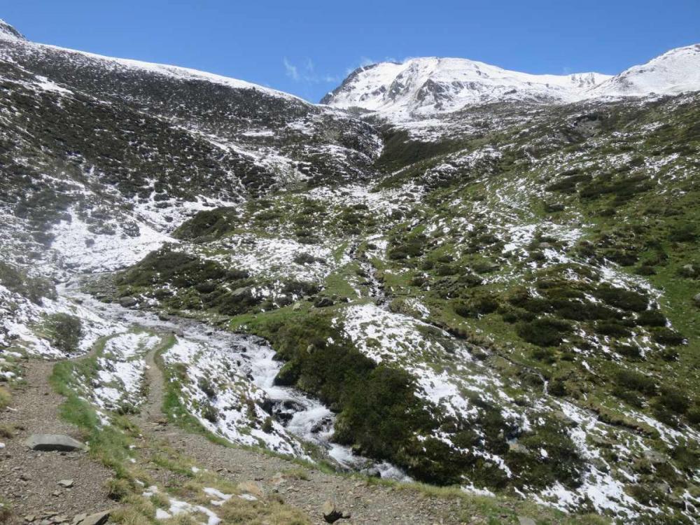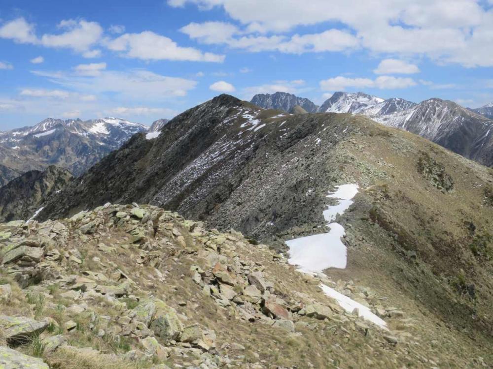 eigentlich teil II meiner tourimpressionen, aber dann doch mehr ein merkzettel für die nächste tour da hin*: andorra andorras einzige öpnv-verbindung nach frankreich ist der fernbus nach toulouse, der erst in toulouse hält. die route über pas de la casa nach l'hospitalet ist seit dem 06.06.19 eingestellt. die buslinien nach barcelona/lleida/reus und portugal gibt es weiterhin. man kommt also aus andorra zu fuß nicht mehr weg, wenn man in der nähe bleiben will und die pässe zugeschneit sind oder man nicht durch wolkenaufliegende gewitter laufen will. wie man aus andorra wieder wegkommt, war die sich uns aufdrängende erste und dauerhaft bei jeder gelegenheit wiederholte frage, nachdem wir "einfach mal so" -nämlich weil wir noch nie da waren- nach andorra abgestiegen waren. nicht so recht die richtige frage wahrscheinlich. der bergdörferstaat mit 6000 einwohnern 1950 und 10 millionen tagestouristen jährlich sieht aus wie eine wintersportshoppinggroßstadt. man kann sich reingucken und auf die zweiten blicke viel sinniges und nettes finden und ausserhalb der siedlungen ganze wanderurlaube verbringen. und prima tageswandern. die haben, um mal ganz doof zu vergleichen, sechs mal zugspitze auf 2/3 der fläche von berlin. und die hauptstadt ist großstädtisch. kippen und alk steuerfrei. prima busnetz im kleinstaat. die gärten am kunstmuseum von frau thyssen in escaldes und, der brücke folgend, smoothiecafe und, kurve weiter, bäcker, fanden wir psychogeografisch am gelungesten. ausser dem die harley-kneipe in der „altstadt“ von la vella, stadtmauer. für 4,60/ tag/person konnten wir 1/4 campingplatz mieten, warme dusche und strom inklusive. weit obendrüber (und auf der anderen seite vom fluss) der walk vom quer roc. camping creu/canillo. klettererplatz & lauschig, die anderen campings, die wir sahen, alle mit mobil an mobil. mi qicycle für achtneunneun zum mitnehmen (folding, 14,5 kg, 45 kmh). ich durfte leider nicht probefahren. die bewirtschafteten berghütten, jedenfalls juclar, in die wir mal reinschauten, ganz „spanisch“. nur-essengehen ist cool. zelten geht generell (aber k.A. ob in den NPs). am tag nach den zwei ganzen tagen regen/gewitter/schnee & wind (12.06., gezuckert bis auf 1700) hatten wir verstanden (und eine andorra-karte erworben) und liefen gegen eindringlichstes abraten des wanderverantwortlichen vom touri-info in pas das stück HRP von pas nach porte-puymerens, gefährlich!. das harmloseste aller denkbaren stücke. wenn es juf nicht gäbe, wäre pas auf knapp unter 2100 höhe der höchstgelegene dauerhaft bewohnte ort (west)europas. so eine geführte gruppe mit tagesrucksäcken hatten wir schon kurz hinter pas gesehen. diese hier sprach uns kurz nach dem foto an, border police!, und fragte nach einem „mann mit grossem schwarzem rucksack“. knapp gescheiterte metapher vermutlich. (innenwand der minenarbeiterruine) zum furten mussten wir etwas absteigen, am weg war zu viel wasser. meine mütze müsste hier noch liegen. schwarz/wolle. * zur ganz subjektivistischen ergänzung der fantastischen sammlung von folko https://www.mitrucksack.de und unter weglassung des geräumten squats in foix und der begegnung mit crs und gendarmerie am samstagnachmittag in toulouse, nur wenig ballerei aber beeindruckender als die 20000 schwarzrot gekleidten rugbymeister (im vergleich zum bären: 6 seiten und das logo der zeitung in rotschwarz). in porte-puymerens liessen wir uns gerne nachdrücklich die portella d'orlu verbieten (GR 7 und dann richtung d'EnBeys), viel schnee und blockwerk hiess es, sehr gefährlich. wir hatten nicht selbst gefragt, sondern waren gefragt worden, wo wir längs wollen. auf nach ner rauchpause am haus vorbeischleichen wollten wir es nicht ankommen lassen. da stand auch eine werbung für bergführer am haus. um noch einen gipfel mitzunehmen, „mussten“ wir dann einen langweiligeren aller berge rauf. stundenlang weite forstwegserpentinen. und vorbeifahrende förster. und hubschrauberschule. und der blick auf die beiden pass-straßen (pas und col puymorens). aber auch nett, man guckt sich serpentine für serpentine ins panorama. (querforc) rücken richtung reservat orlu . südöstlich von pas ist nach karte einer, auf dem man kilometerlang langkann, so auf 2.6 und höher. nb: dent d'orlu, falls man den auf der karte nicht findet... = pic de brasseil (2222). [punta sommeiller 3333 (→ tour bessanese, rochiamelone, grande sassiere)]. (tossal mercader) val siscar val arqes &serpentinen &so gegen die komplettausstattung von ax kommen cauterets und luchon als städte nicht an. petit montagnard, confort ganz oben (die unsanierten zimmer für billiger). nachts mit nem drink bißchen thermalbaden am marktplatz. bären-alarmismus am GR 10 (gebiet der kommune seix). eine bärin gehört, gesehen, schreiend weggelaufen, nix passiert. man vergleiche mit den bärenzahlen in der slowakei...(in den gesamten pyrenäen: 36). la depeche vom 14.06.19 mit einem bären über die ganzetitelseite und der überschrift Faut-il avoir peur de l'ours? zwei sonderseiten bären pro und contra dazu. leider nicht alles online, aber ein teil .... und mittlerweile weiteres: https://www.ladepeche.fr/2019/06/12/un-randonneur-poursuivi-par-une-ourse-en-ariege-j-ai-cru-que-cetait-la-fin,8252691.php https://www.ladepeche.fr/2019/06/14/peut-on-cohabiter-avec-les-ours,8256236.php https://www.ladepeche.fr/2019/06/17/a-9-ans-il-a-filme-lours-lors-dune-randonnee-en-ariege,8261985.php https://www.ladepeche.fr/2019/06/18/les-recherches-de-lourson-echappe-se-poursuivent-dans-le-tarn,8263785.php ~ equipment? alles schön (bei mir): a) ab sofort nur noch diese heringe: carbon core, sind ihren preis wert. b) grödel (spikes china-chainsen und chainsen) hätten wir uns für diese tour sparen können, pickel auch. aber beim nächtlichen packen hatten wir noch massif montcalm im kopf, knapp zu früh im jahr, wussten wir eigentlich. und (col inf.) literole hatten wir schon mal eisig - im septemb