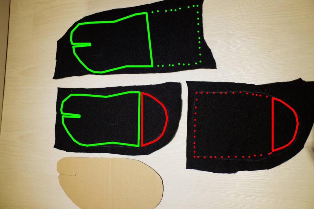 Hi zusammen, ich melde mich mal wieder aus der Versenkung - wegen einem Paar Socken. Nachdem ich das schon seit etwa 2 oder 3 Jahren mal machen wollte kam ich endlich dazu und habe mich sogar dazu hingerissen ein paar Bilder für euch zu machen. Die Tabi-Socken von Luna habe ich seit dem AZT in 2017, die wiegen allerdings 85g pro Paar und sind relativ hoch (etwa zur Hälfte der Wade). Injinjis finde ich ok, aber nicht so 100% bequem, vor allem über längere Strecken und zudem sind die nicht ganz so warm, wie in Socken, bei denen die Zehen zusammen verpackt sind. Da auch der Grundschnitt der Lunas mir nicht perfekt gepasst hatte, habe ich einfach meine Füße auf Papier umkreist und das ganze etwas angepasst. Wichtig ist der Punkt zwischen großem und zweiten Zeh, damit die Socke später passt. Die beiden Linien zeigen die Position des Knöchels, so dass man beim zusammen nähen weiß wo der "Knick" ist. Man kann zudem sehen, dass der Stoff breiter wird, als der eigentliche Fuß - das habe ich von den Lunasocken übernommen, da dadurch aus dem 2D Stoff später eine passende 3D Form werden kann. Die Zeichnung dann mit den wichtigen Markierungen auf Pappe übertragen um es als Schablone nutzen zu können. Die Socke besteht aus drei Teilen: Boden, Oberteil und Fersenteil. Der Boden entspricht der Fußform wie oben beschrieben. Das Oberteil (grün) ist hiervon die vordere Hälfte, nur ab der Knöchelmarkierung verlängert; das Fersenstück (rot) entsprechend die hintere Hälfte ab der Knöchelmarkierung verlängert. Die gepunkteten Kästen sollten gleichgroß sein, diese ergeben zusammen dann den Teil, der am Bein liegt. Je länger die Kästen, desto höher sind später die Socken. (Ich hoffe, dass das irgendwie verständlich ist ) Ganz wichtig ist es, die Naht zwischen den Zehen U-Förmig verlaufen zu lassen und zwar so breit, dass man dazwischen mit der Schere den Stoff auftrennen kann ohne dass die Naht sich auflöst. Im Anschluss die Teile zusammen nähen. Erst grün auf grün und rot auf rot, dann die beiden Teile zusammen nähen, auf die passende Länge schneiden und oben umsäumen - Fertig! Mein Fleece Stoff scheint etwas dünner zu sein als der von Luna. Ich habe das schon ewig hier liegen, müsste aber irgendwas um die 150g/m² sein. Das Gewicht beträgt 45g, also fast halb so viel wie die gekauften und in einem Rahmen, bei dem ich kein schlechtes Gewissen mehr habe die einzupacken. Die Hauptarbeit war es die Schablone zu malen und den Schnitt so hinzubekommen - wenn ich mir noch ein Paar nähen sollte geht das ziemlich fix . liebe Grüße & warme Füße Micha