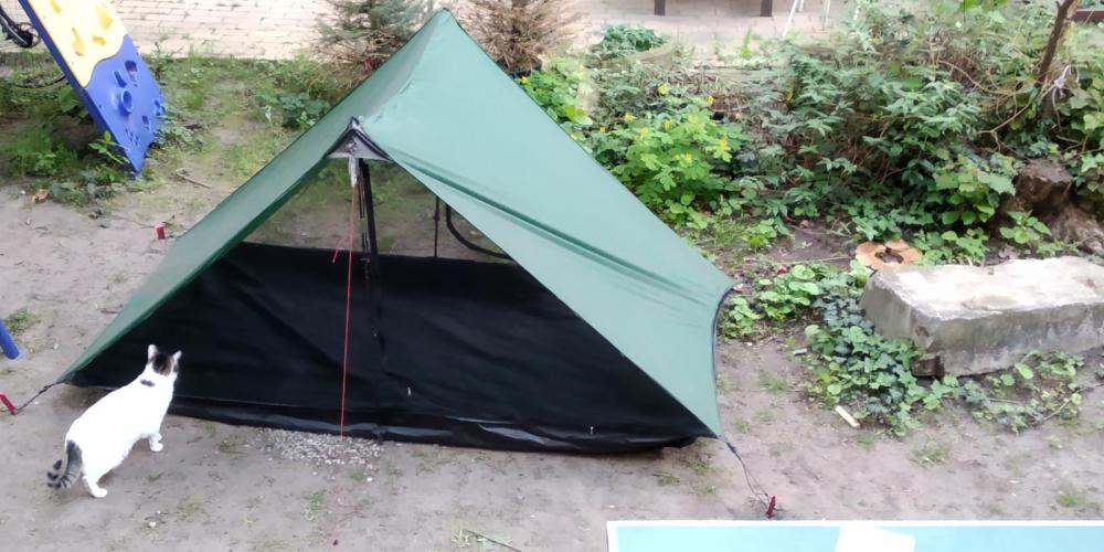 Hallo Leute, ich habe mir im Frühjahr ein Zelt genäht. Die Maße entsprechen ziemlich dem Zpacks Duplex. Die Wanne ist weniger hoch und der Cat-Cut im Giebel ist weniger steil. Außerdem habe ich meine Reißverschlüsse nicht als Rainbow sondern in L-Form eingenäht. Das Material kommt von Extremtextil und hat zusammen etwa 200€ gekostet. Zuerst habe ich die Wanne gemacht, danach das Netz angebracht und das Dach angenäht. Die Türen kamen zum Schluss. Es war mein erstes Nähprojekt und ich habe keine Schnittmuster verwendet. Im wesentlichen habe ich den Stoff mit einem Zollstock ausgemessen und dann ungefähr in Form geschnitten. Die graden Kanten sind erst beim Nähen entstanden. Würde ich nicht mehr so machen. Ich empfehle auch niemandem als erstes Nähprojekt gleich ein Zelt zu wählen. Ich habe nervenaufreibende Situationen erlebt. Als Tisch musste die Tischtennisplatte herhalten. Meine Nähmaschine ist die billigste, die ich bei Ebay-Kleinanzeigen finden konnte - ich kann sie nicht empfehlen. Der Vorbesitzer hatte sie beim Lidl gekauft und sie ist wirklich nicht so toll. Zu schwach, komische Dynamik, blockiert schnell. Man sieht nicht, wenn der Unterfaden zur Neige geht. Das Zelt ist aus grünem Ripstop-Nylon (silikonbesch., 20den, 36g/qm), der Boden 40den Ripstop-Nylon (TPU-beschichtet, 70g/qm), das Netz ist aus Polyamid (155 Maschen/qcm, 25g/qm). Das fertige Zelt wiegt 815g. Trotz der Schwierigkeiten bin ich mit dem Ergebnis sehr zufrieden. Der ersten Touren habe ich mit den Zelt bereits unternommen und es funktioniert super. Fragen gerne hier rein. Beste Grüße Martin